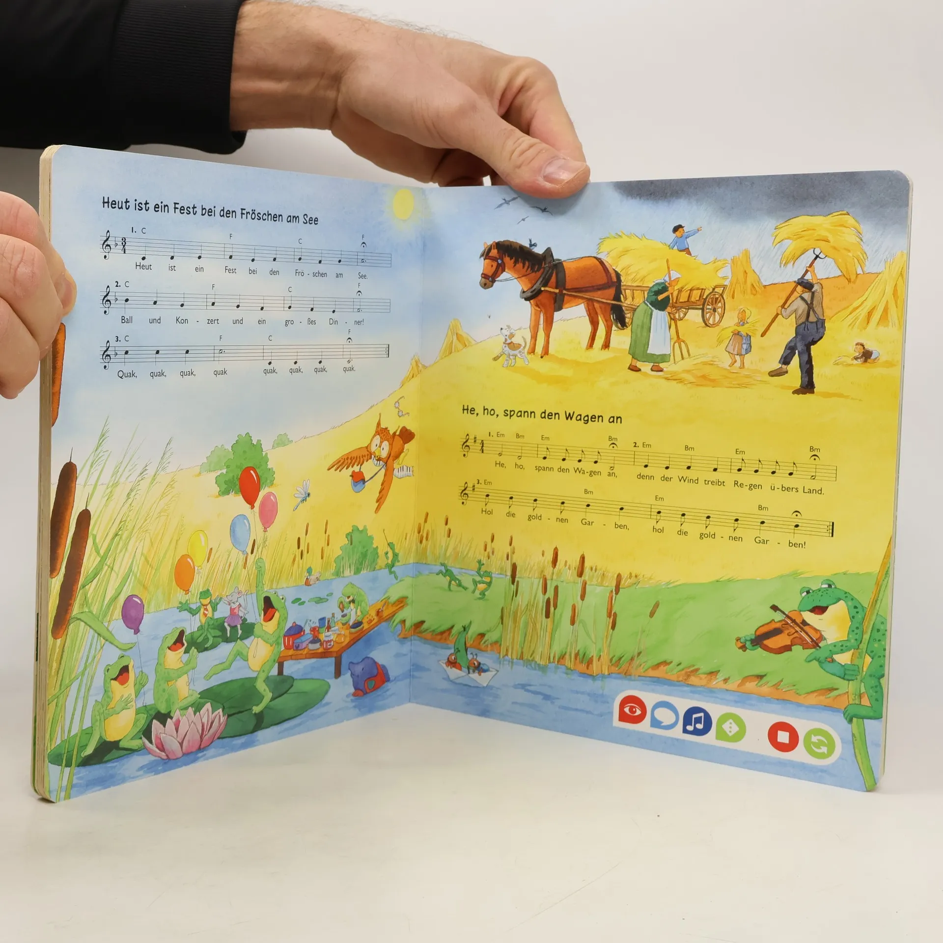 Singen und Musizieren ist das ideale Thema für tiptoi®. Mit dem Stift können Kinder 18 bekannte und beliebte Lieder komplett oder strophenweise abspielen oder die Playbackversion zum Mitsingen auswählen. Lustige Spiele und eine animative Klaviatur sind weitere Mitmachelemente. Erklärt werden viele Begriffe wie Note, Tonleiter oder Kanon. Alle Lieder sind mit Notensatz und Gitarrenakkorden abgedruckt, einem Hauskonzert steht also nichts mehr im Wege.