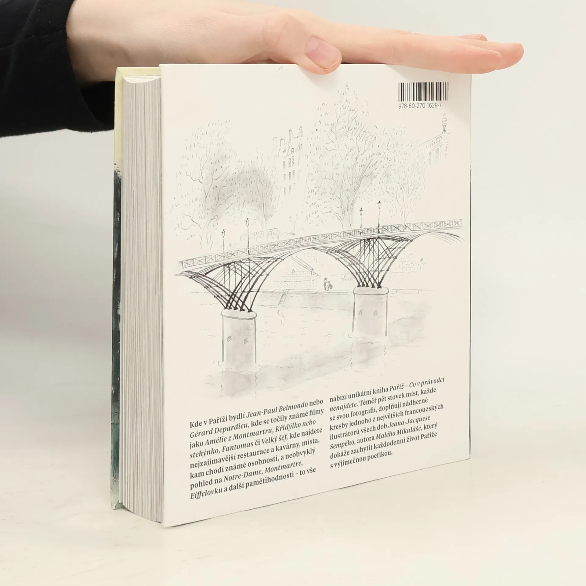 Kde v Paříži bydlí Jean-Paul Belmondo nebo Gérard Depardieu, kde se točily známé filmy jako Amélie z Montmartru, Křidýlko nebo stehýnko, Fantomas či Velký šéf, kde najdete nejzajímavější restaurace a kavárny, místa, kam chodí známé osobnosti, a neobvyklý pohled na Notre-Dame, Montmartre, Eiffelovku a další pamětihodnosti – to vše nabízí unikátní kniha Paříž – Co v průvodci nenajdete. Téměř pět stovek míst, každé se svou fotografií, doplňují nádherné kresby jednoho z největších francouzských ilustrátorů všech dob Jeana-Jacquese Sempého, autora Malého Mikuláše, který dokáže zachytit každodenní život Paříže s výjimečnou poetikou.