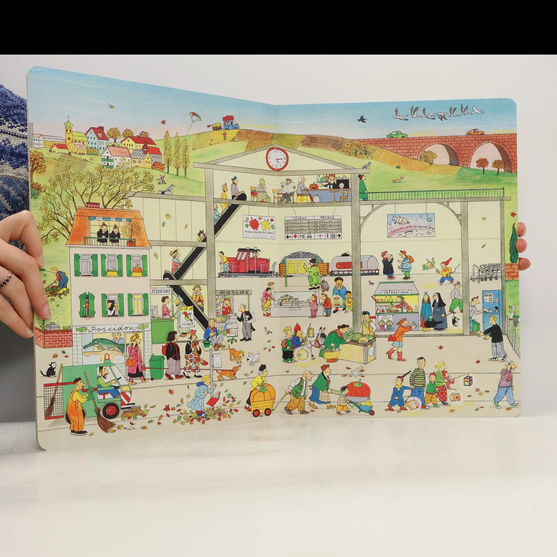 Jednoduchou řečí obrázků vypráví renomovaná autorka a ilustrátorka dětských knih Rotraut Susanne Bernerová příběhy všedního dne, obratně a vtipně splétá dohromady drobné epizody. Malý čtenář může v knížce hledat postavičky a zvířátka a sledovat, co dělají od první do poslední stránky.