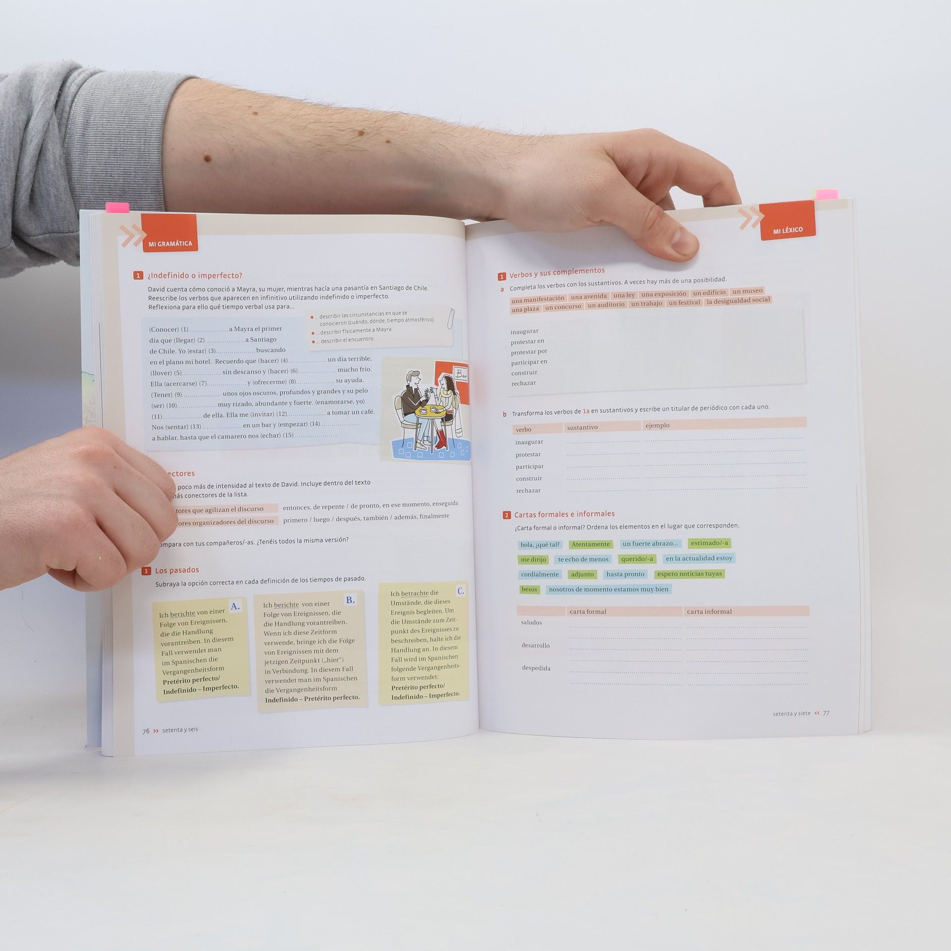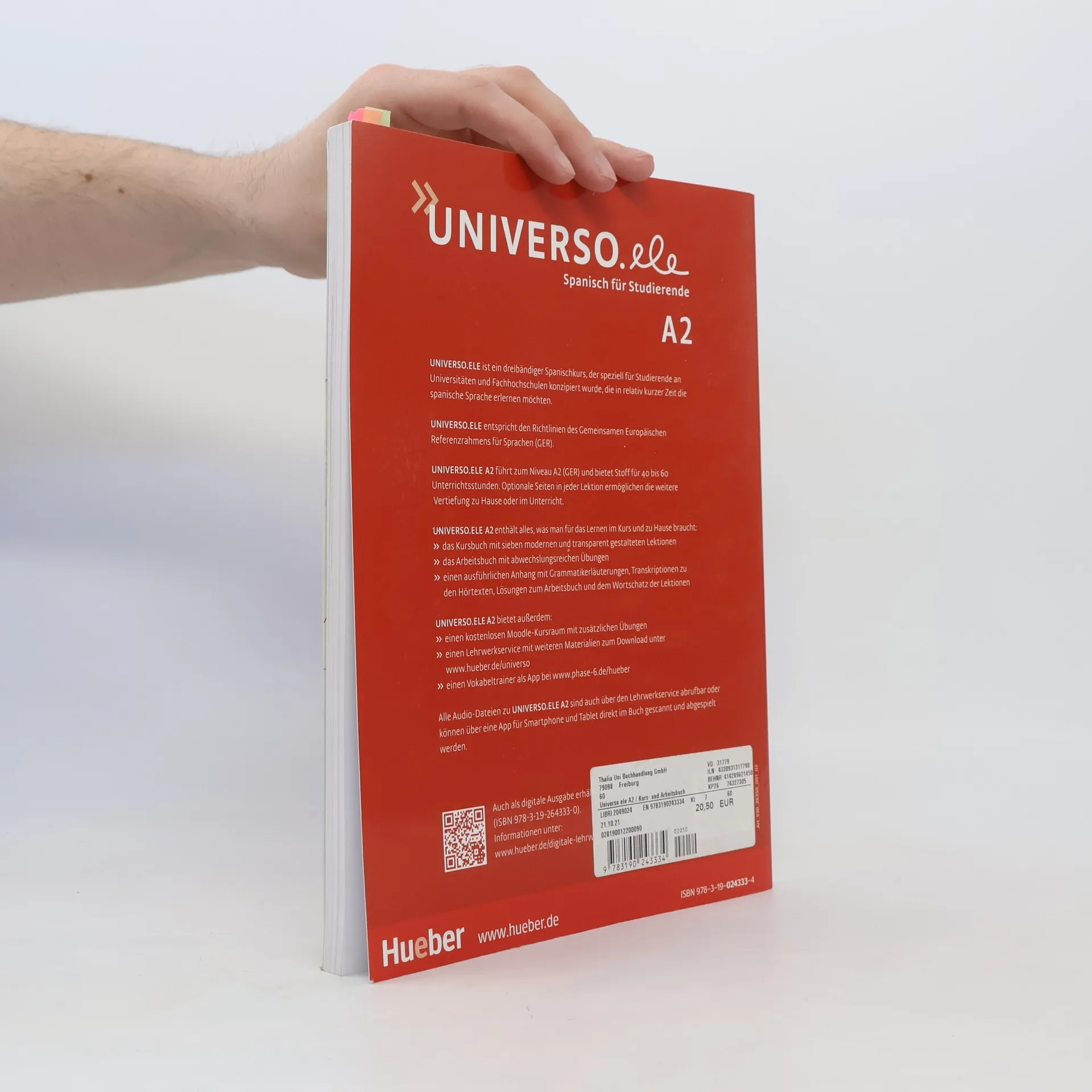 Zielniveau A2, Zielgruppe: Erwachsene an Universitäten, Hochschulen und Fachhochschulen. Das Lehrwerk ist speziell für Studierende konzipiert, die Spanisch für ihr Studium benötigen oder die Sprache schnell erlernen möchten. Es richtet sich an Anfänger ohne Vorkenntnisse und bereitet die Lernenden auf Alltagssituationen sowie auf Studienaufenthalte in spanischsprachigen Ländern vor. Mit einem handlungsorientierten Ansatz, der die kommunikative Kompetenz von Anfang an fördert, ermöglicht das Lehrwerk schnelle Lernerfolge. Die klar strukturierten Lektionen und Vokabellernstrategien unterstützen den Lernerfolg. Die Themen sind an die Interessen junger Menschen angepasst und bieten Einblicke in die Kulturräume Spaniens und Lateinamerikas. Übungen zur Zusammenarbeit fördern das Lernen in Gruppen, während die Grammatik selbstentdeckend vermittelt wird. Das Lehrwerk ist flexibel an unterschiedliche Kurslängen anpassbar und bietet Materialien für 40 bis 60 Stunden Unterricht. Zusatzseiten in jeder Lektion ermöglichen eine Vertiefung des Gelernten. Die digitale Ausgabe umfasst das gesamte Kurs- und Arbeitsbuch mit integrierten Audio-Dateien. Lehrer finden im Handbuch didaktische Hinweise und Lösungen. Der kostenlose Lehrwerkservice bietet Kopiervorlagen, Tests und Online-Übungen, während Materialien für Moodle-Kursräume das autonome Lernen fördern.