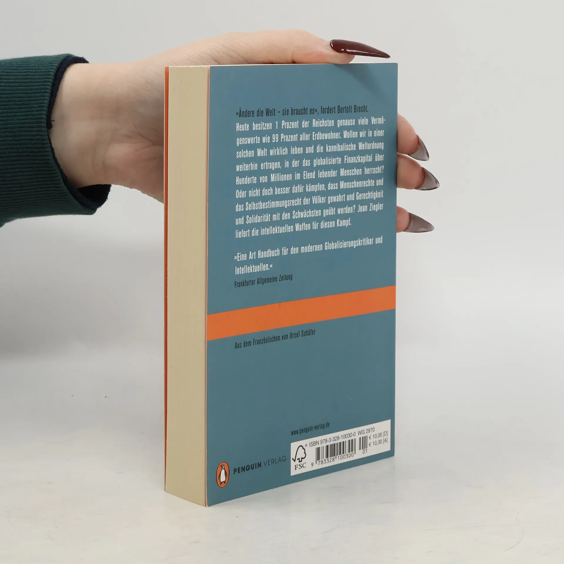 »Ändere die Welt – sie braucht es«, fordert Bertolt Brecht. Heute besitzen 50 Einzelpersonen so viel wie die abgehängte Hälfte der Menschheit. Wollen wir in einer solchen Welt wirklich leben und die kannibalische Weltordnung weiterhin ertragen, in der die Oligarchen des globalisierten Finanzkapitals über Hunderte von Millionen im Elend lebender Menschen herrschen? Oder nicht doch besser eine planetarische Zivilgesellschaft erkämpfen, in der die Menschenrechte und das Selbstbestimmungsrecht der Völker gewahrt und Gerechtigkeit und Solidarität mit den Schwächsten geübt werden? Jean Ziegler liefert die intellektuellen Waffen für diesen Kampf.