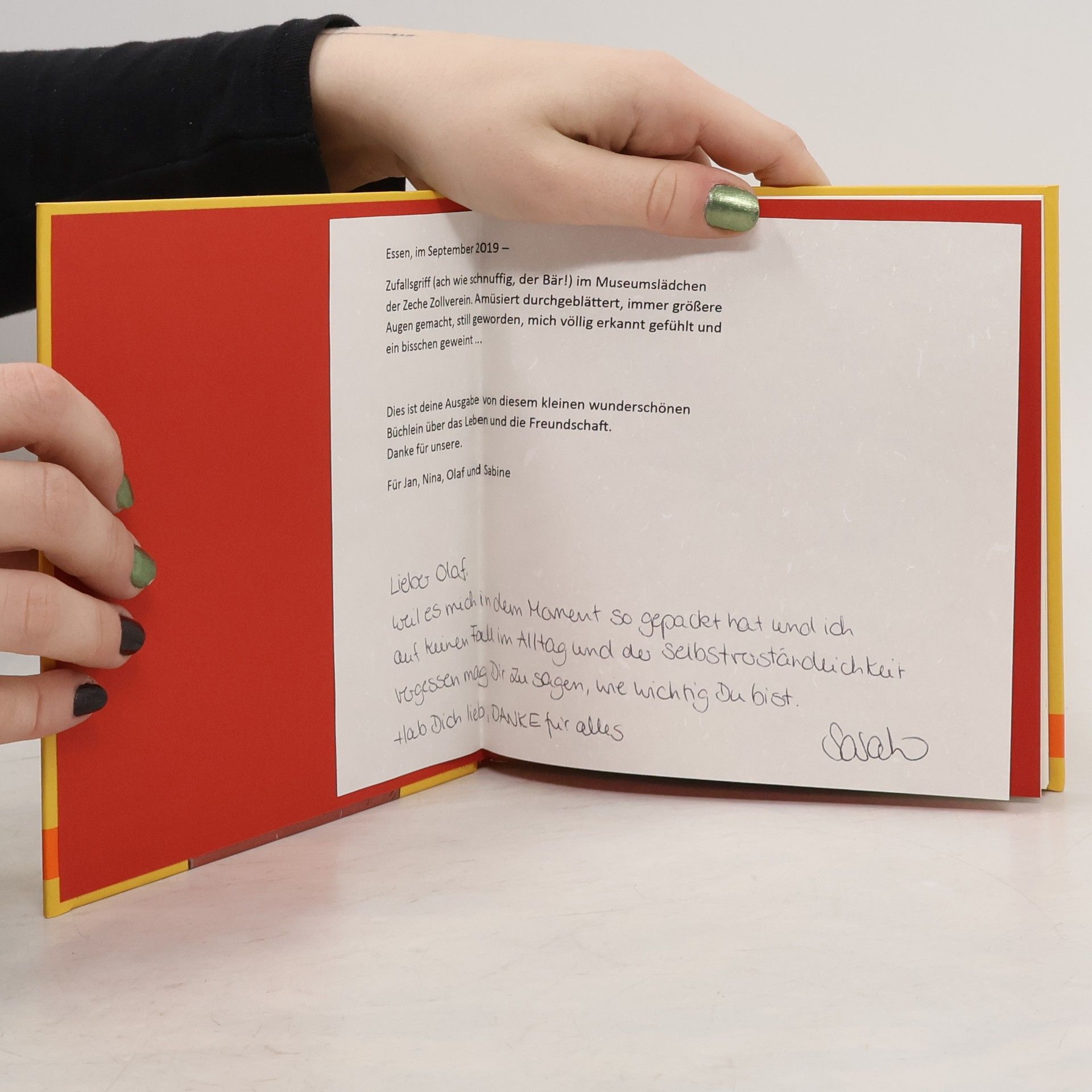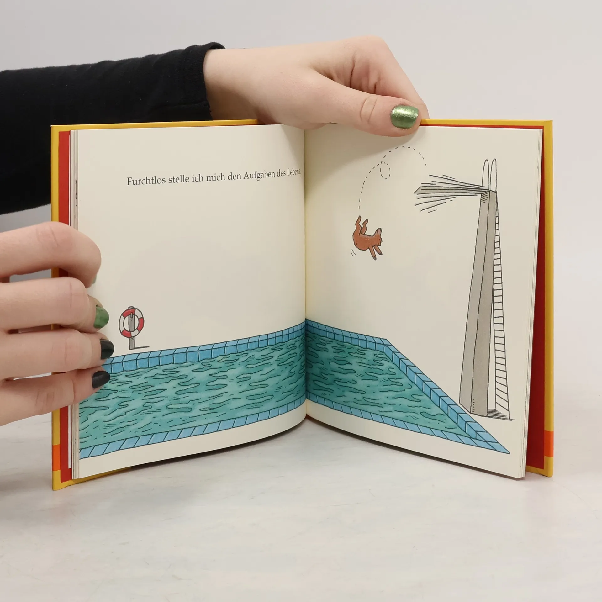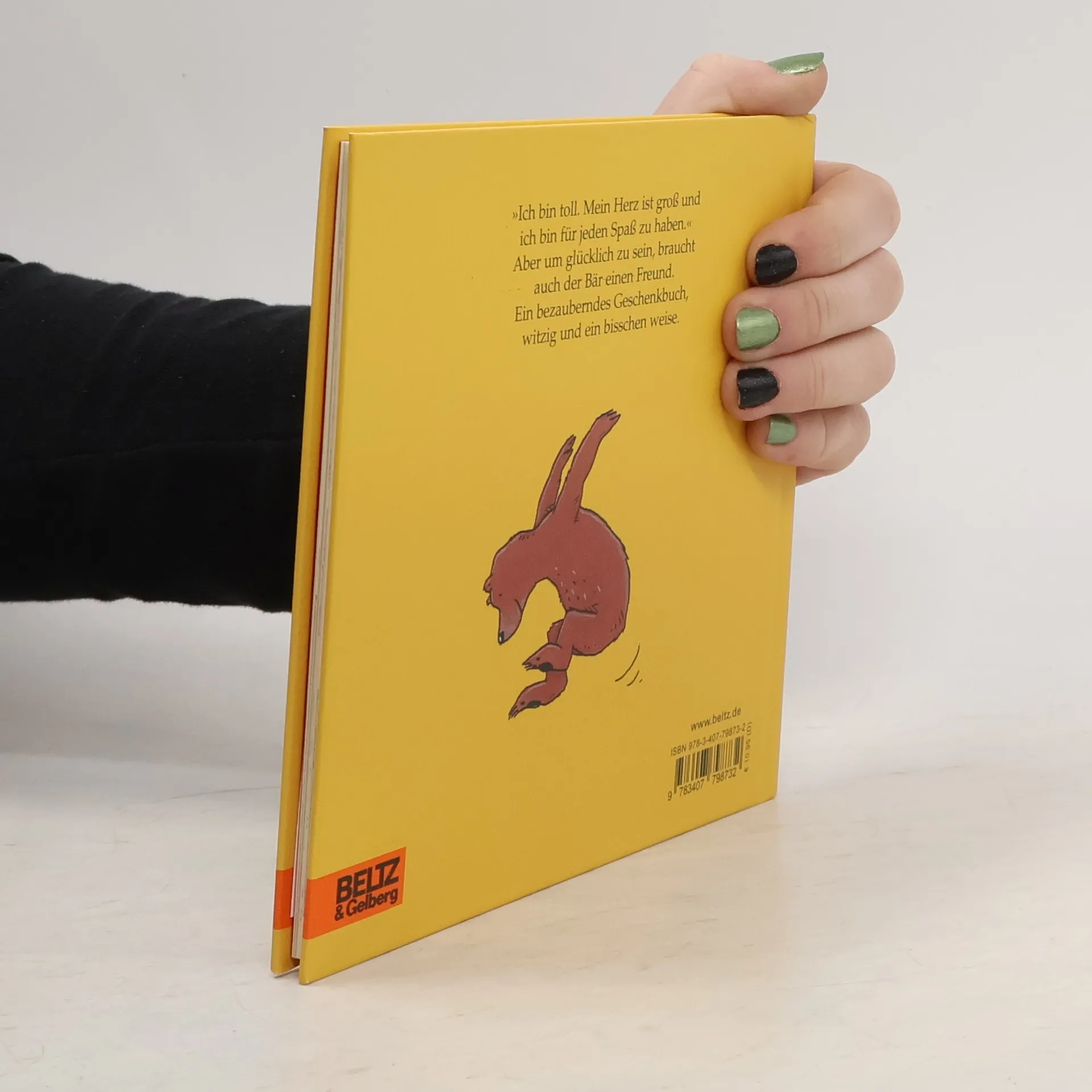 Bären sind klasse. Der von Philip Waechter sowieso. Er findet das Leben schön und sein Herz ist groß. Aber um wirklich glücklich zu sein, braucht auch er einen Freund, zu dem er sagen kann: „Schön, dass du da bist!“ Ein bezauberndes Geschenkbuch, witzig und ein bisschen weise. Bären sind den Menschen, wie wir wissen, nicht ganz unähnlich. Dieser Bär ist schön und toll und legt Wert auf ein gepflegtes Äußeres. Er erfreut sich an den kleinen Dingen des Lebens, aber natürlich auch an den großen, und er ist für jeden Spaß zu haben. Und, das Schönste, er ist auch schlau. Manchmal spürt er, dass er etwas ganz Besonderes ist. Trotzdem gibt es manchmal Tage, an denen er sich schrecklich einsam fühlt. Und er macht sich schleunigst auf den Weg und läuft und läuft zu dir - „Schön, dass du da bist!“ Mit herzhafter Ironie und witzigem Blick erzählt Philip Waechter eine ganz einfache Geschichte auf waechtersche und ganz unübertreffliche Weise.