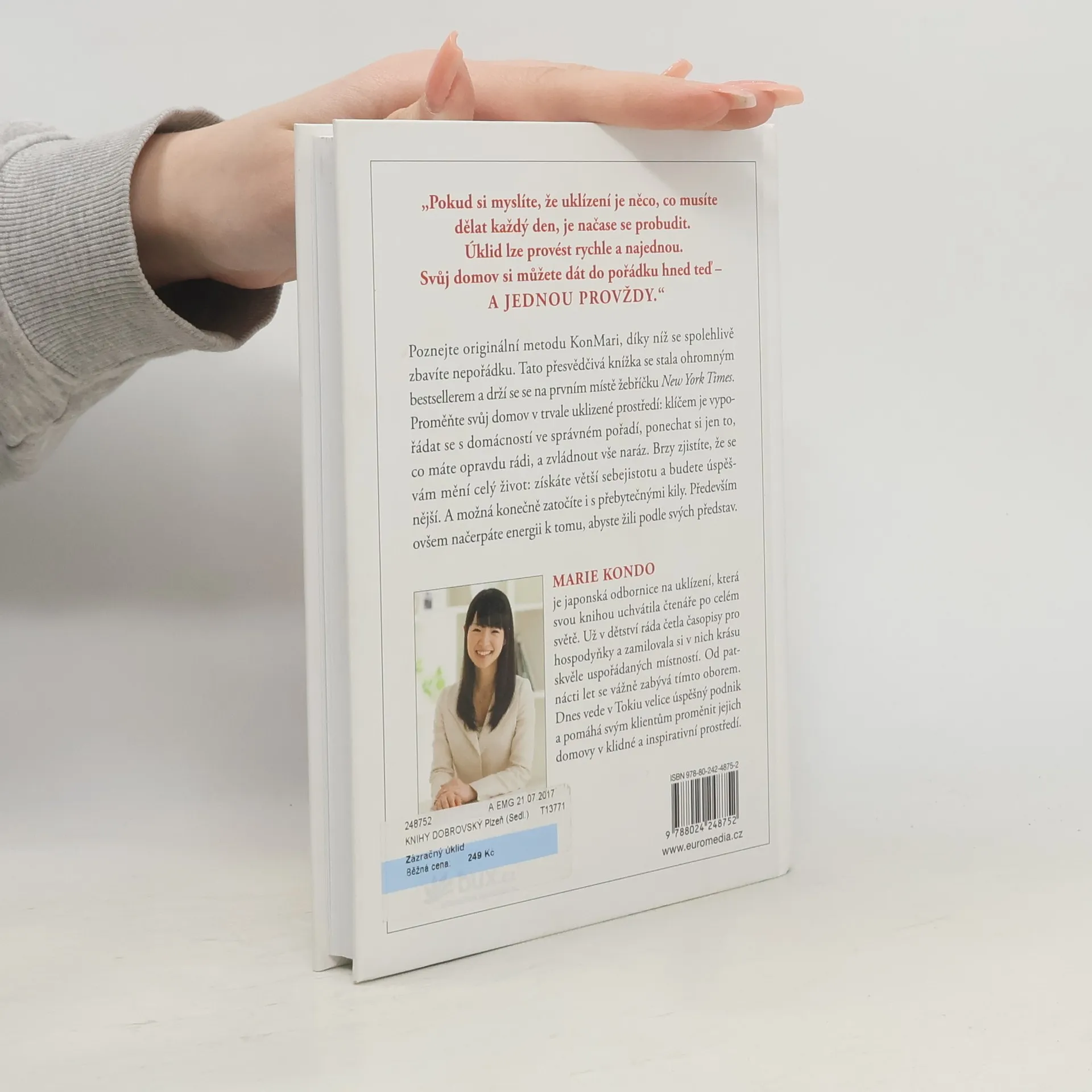 Poznejte originální umění, díky němuž se spolehlivě zbavíte nepořádku a náležitě si uspořádáte věci. Tato přesvědčivá knížka se právem stala ohromným bestsellerem po celém světě a vyšvihla se na první místo žebříčku New York Times. Proměňte svůj domov pomocí autorčiny inspirativní metody v trvale uklizené prostředí: klíčem je vypořádat se s domácností ve správném pořadí, ponechat si jen to, co opravdu milujete, a udělat vše rychle. Změníte tak svůj život – získáte větší sebejistotu, budete úspěšnější a možná i konečně zatočíte s přebytečnými kily. A především načerpáte energii k tomu, abyste žili podle svých představ.