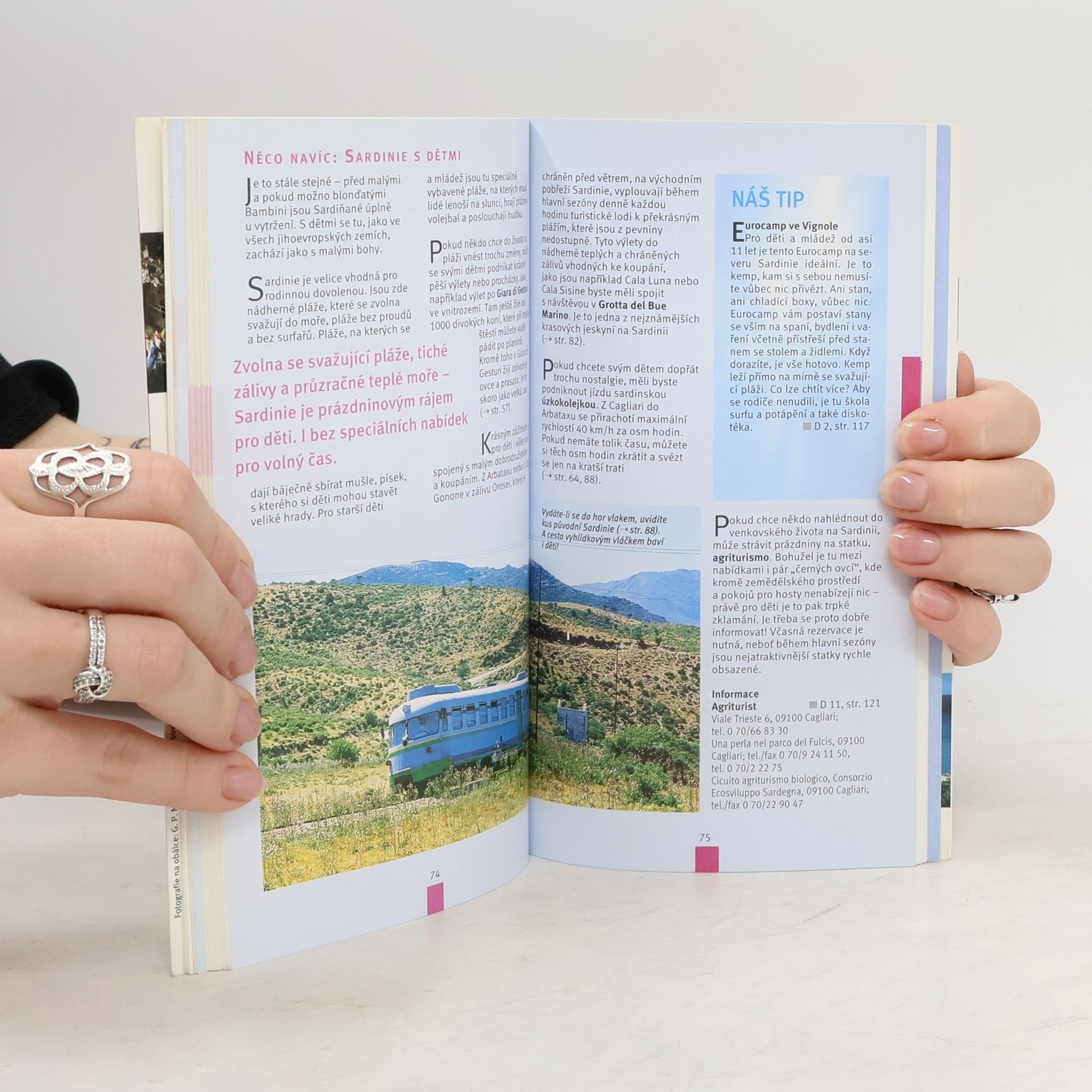 Průvodce po italském ostrově s popisem důležitých míst a památek, s kulturními tipy a nabídkou na příjemné prožití volného času. Možnosti ubytování a stravování, nákupy, přehled slavností a festivalů, tipy na nejrůznější aktivity pro rodiny s dětmi. Popis turisticky atraktivních tras. Přehled letopočtů a významných událostí, slovníček základních výrazů, důležité adresy a informace pro turisty. Text doplňují mapy a plánky měst.