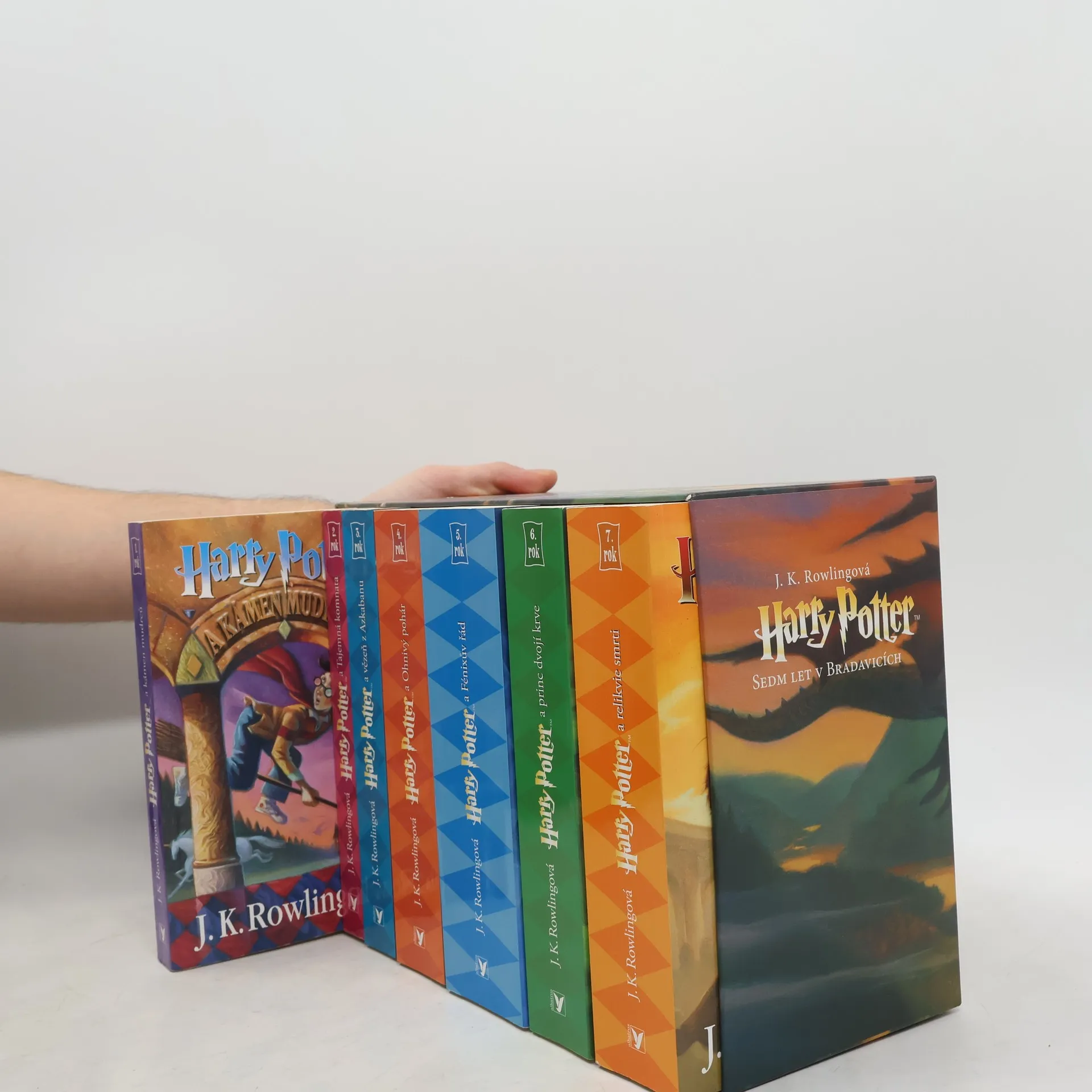 Série knih Harry Potter od J.K. Rowlingové sleduje příběh mladého čaroděje Harryho Pottera, který se vydává na cestu plnou magie, přátelství a odvahy. Společně s přáteli Hermionou a Ronem objevuje tajemství Bradavické školy čar a kouzel, čelí temným silám vedeným Lordem Voldemortem a bojuje za ochranu kouzelnického světa. Série kombinuje napětí, humor a hluboké emoce, přičemž prozkoumává témata jako láska, oběť a význam volby mezi dobrem a zlem. Série obsahuje knihy Kámen mudrců, Tajemná komnata, Vězeň z Azkabanu, Ohnivý pohár, Fénixův řád, Princ dvojí krve, Relikvie smrti.