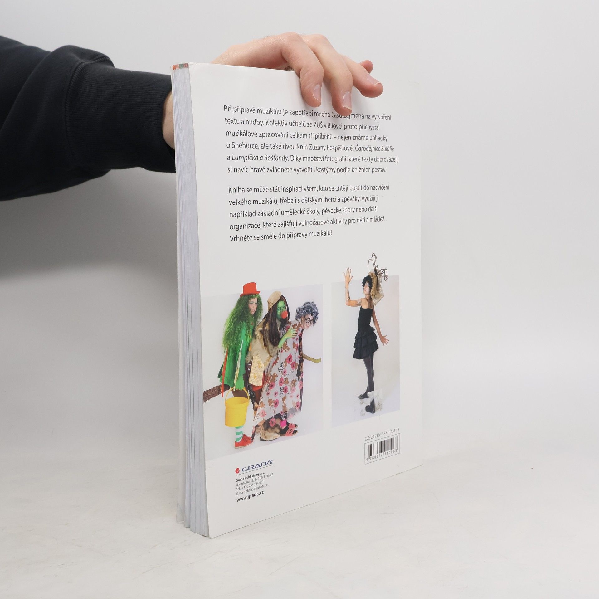 Při přípravě muzikálu je zapotřebí mnoho času zejména na vytvoření textu a hudby. Kolektiv učitelů ze ZUŠ v Bílovci proto přichystal muzikálové zpracování celkem tří příběhů – nejen známé pohádky o Sněhurce, ale také dvou knih Zuzany Pospíšilové: Čarodějnice Eulálie a Lumpíčka a Rošťandy. Díky množství fotografií, které texty doprovázejí, si navíc hravě zvládnete vytvořit i kostýmy podle knižních postav. Kniha se může stát inspirací všem, kdo se chtějí pustit do nacvičení velkého muzikálu, třeba i s dětskými herci a zpěváky. Využijí ji například základní umělecké školy, pěvecké sbory nebo další organizace, které zajišťují volnočasové aktivity pro děti a mládež. Vrhněte se směle do přípravy muzikálu!