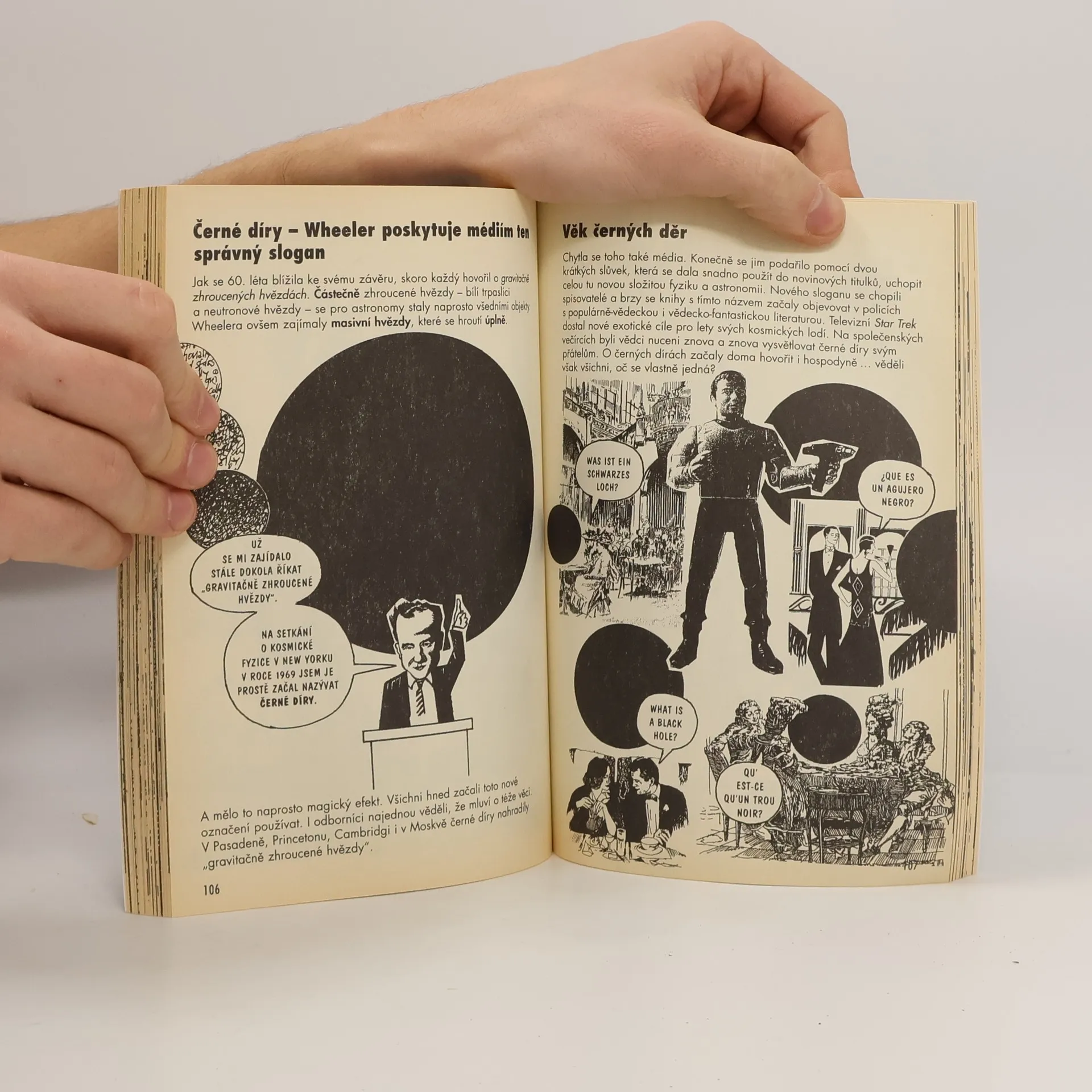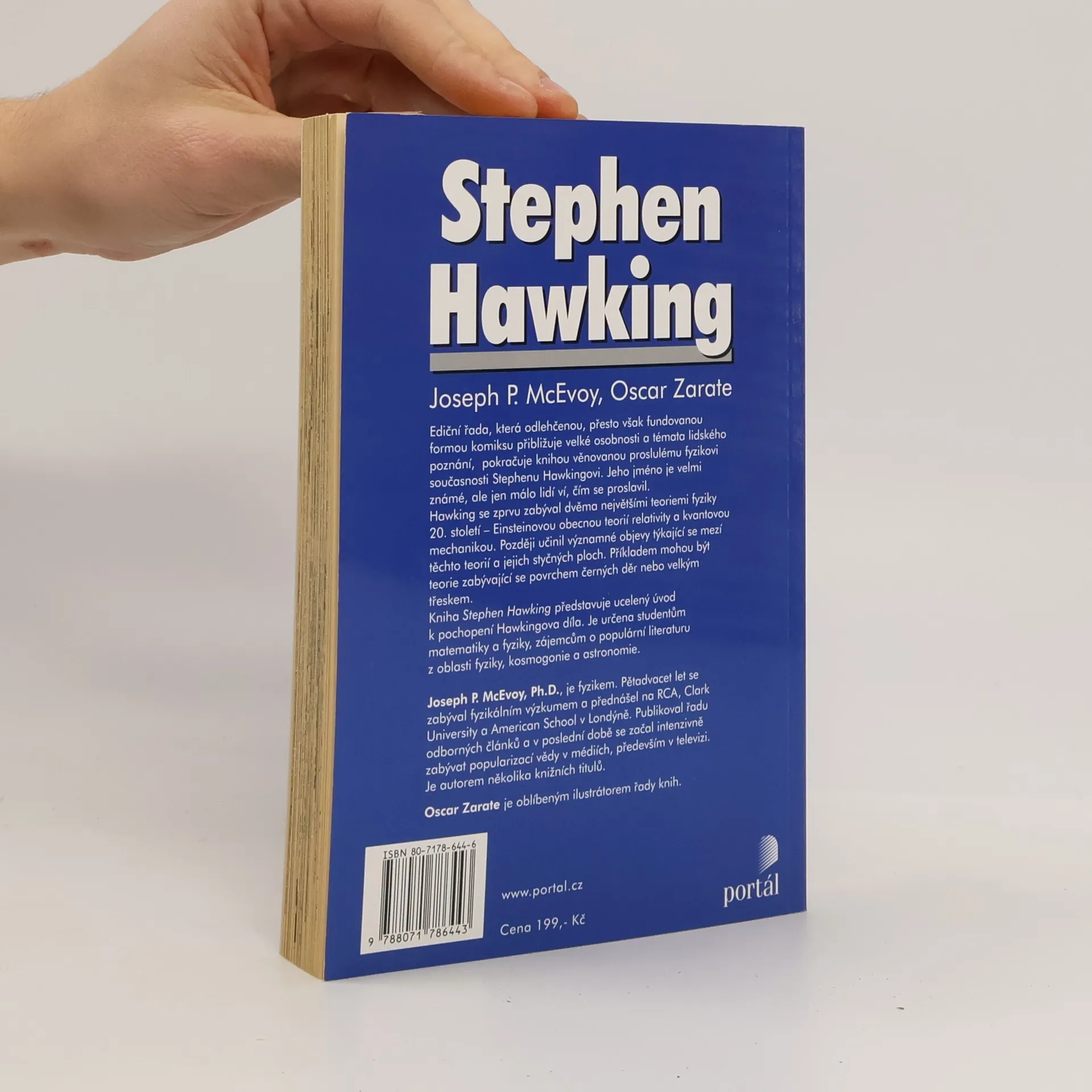 Ediční řada, která odlehčenou, přesto však fundovanou formou komiksu přibližuje velké osobnosti a témata lidského poznání, pokračuje knihou věnovanou proslulému fyzikovi současnosti Stephenu Hawkingovi. Jeho jméno je velmi známé, ale jen málo lidí ví, čím se proslavil. Hawking se zprvu zabýval dvěma největšími teoriemi fyziky 20. století - Einsteinovou obecnou teorií relativity a kvantovou mechanikou. Později učinil významné objevy týkající se mezí těchto teorií a jejich styčných ploch. Příkladem mohou být teorie zabývající se povrchem černých děr nebo velkým třeskem. Kniha představuje ucelený úvod k pochopení Hawkingova díla. Je určena studentům matematiky a fyziky, zájemcům o populární literaturu z oblasti fyziky, kosmogonie a astronomie.