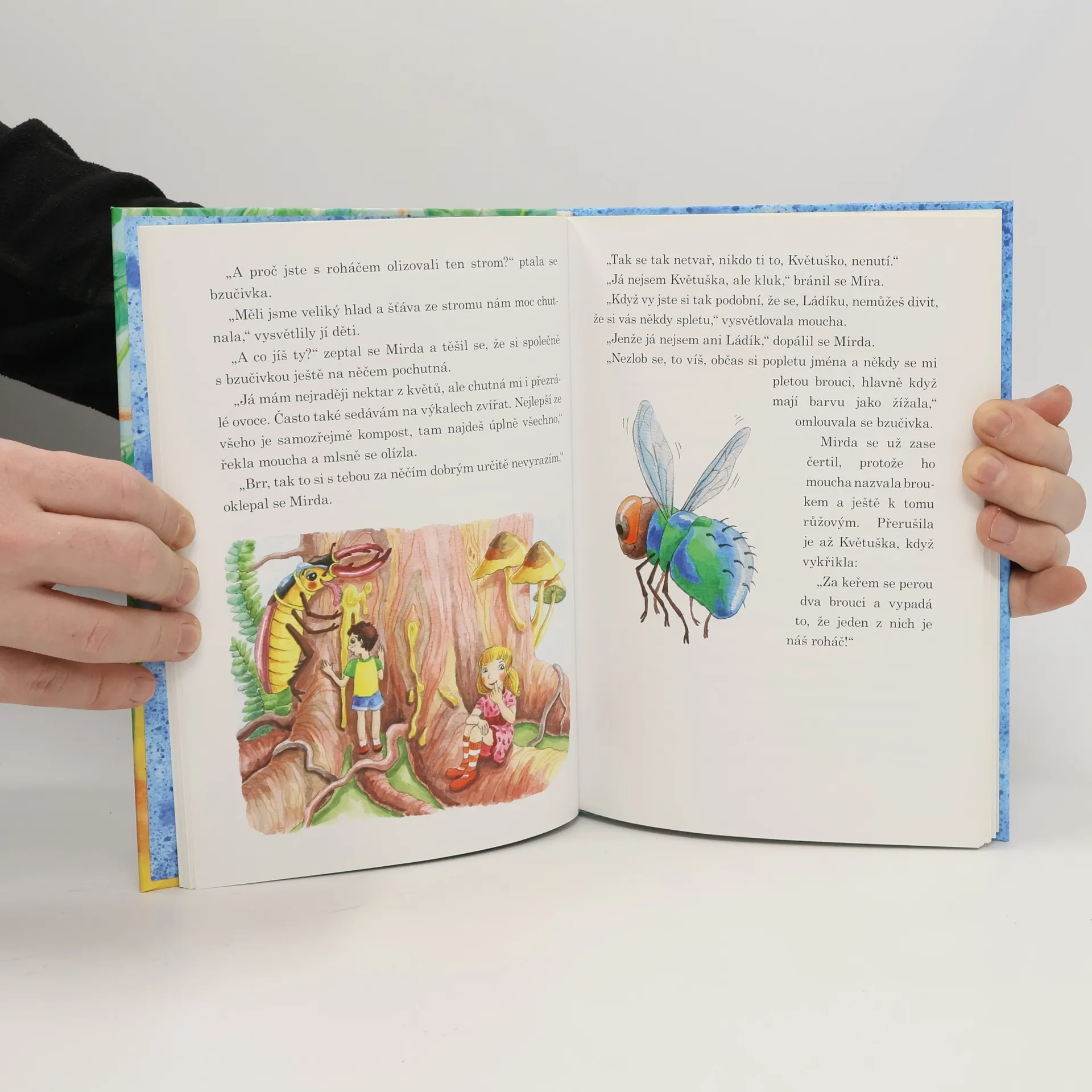 V prvním díle knihy "O Květušce a tesaříkovi" jste se seznámili s Květuškou. Ta zakopla o kouzelný pařez a znenšila se do velikosti brouků. V hmyzí říši potkala svého nejlepšího kamaráda tesaříka dubového a společně prožili spoustu dobrosružství. O rok později v druhém díle "Květuška hledá tesaříka" Květuška klopýtne o pařez opět a tentokrát se do říše hmyzu nedostane sama, ale s ní se mezi brouky ocitne i protivný Mirda, bratr Květuščina kamaráda Matěje. V hmyzí říši u rodného stromu pak někdo chybí? Květuška se přivítala s můrkou, pavoučicí, ale kde je tesařík?