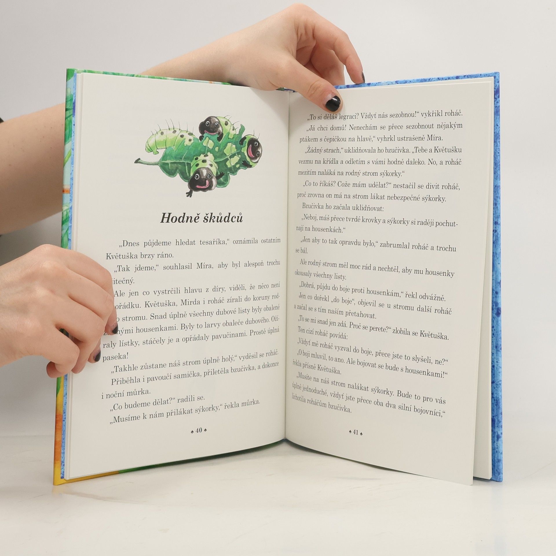 V prvním díle knihy "O Květušce a tesaříkovi" jste se seznámili s Květuškou. Ta zakopla o kouzelný pařez a znenšila se do velikosti brouků. V hmyzí říši potkala svého nejlepšího kamaráda tesaříka dubového a společně prožili spoustu dobrosružství. O rok později v druhém díle "Květuška hledá tesaříka" Květuška klopýtne o pařez opět a tentokrát se do říše hmyzu nedostane sama, ale s ní se mezi brouky ocitne i protivný Mirda, bratr Květuščina kamaráda Matěje. V hmyzí říši u rodného stromu pak někdo chybí? Květuška se přivítala s můrkou, pavoučicí, ale kde je tesařík?