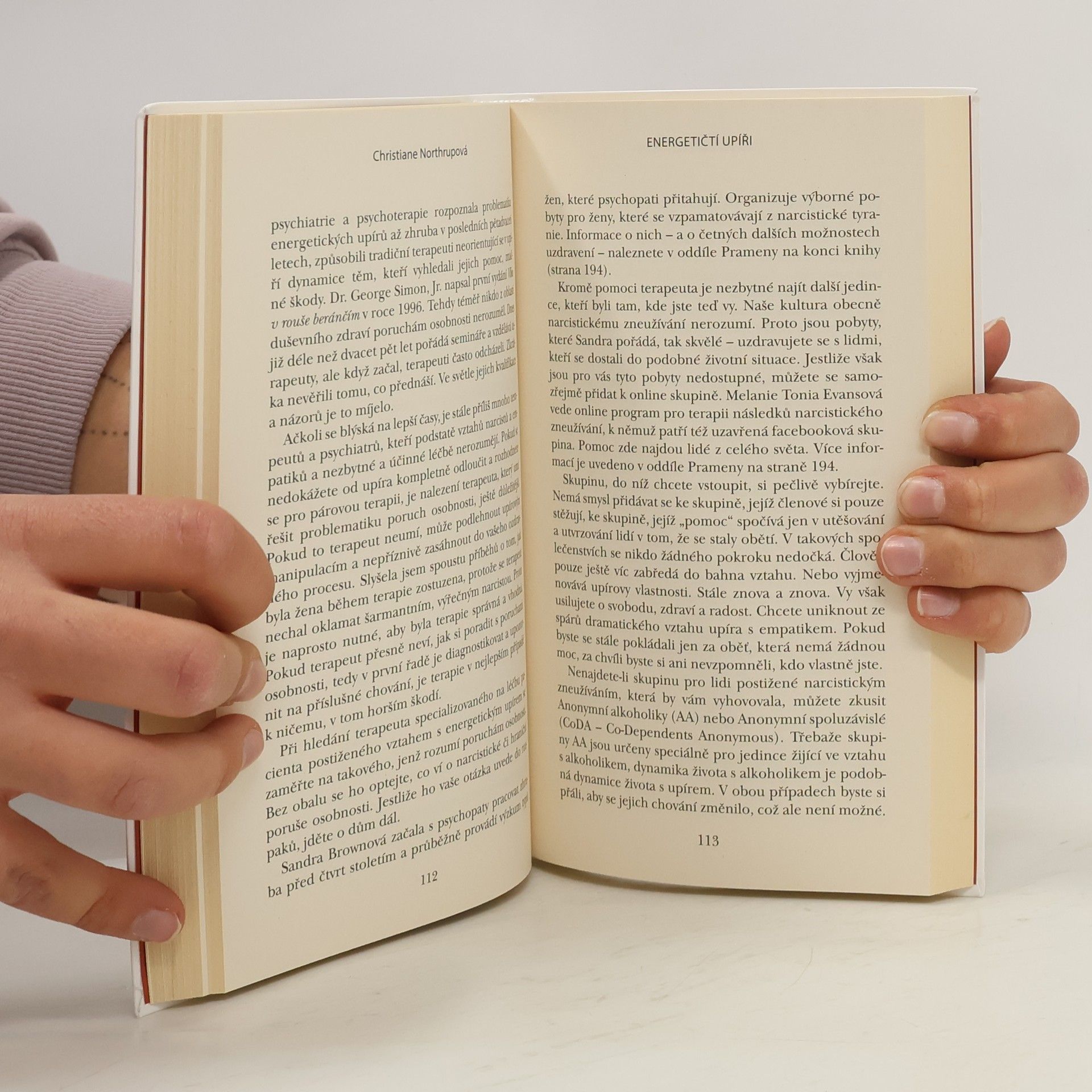 Empatičtí, citliví lidé přirozeně vnímají život soucitně, se zájmem o druhé a jsou nositeli vnitřního světla. Zároveň jsou ale oblíbenou kořistí energetických upírů – lidí, kteří se na jejich energii přiživují, a to na všech úrovních – fyzické, citové i finanční. Známá lékařka Christiane Northrupová představuje fenomén „energetických upírů“ a nabízí způsob, jak tyto negativně působící lidi ve svém okolí odhalit a získat zpět ztracenou energii. Své závěry opírá o nejnovější výsledky vědeckých výzkumů a uvádí příklady z vlastní praxe a života. Northrupová popisuje dynamiku vztahu mezi empatickým člověkem a energetickým parazitem a ukazuje, jak „upíři“ využívají energii druhých k vlastnímu prospěchu. Nabízí praktické techniky, díky nimž se škodlivým vztahům můžete rovnou vyhnout, anebo se uzdravit, pokud už vás zasáhly. Jakmile rozpoznáte vzorce chování typické pro tyto nevyvážené vztahy, budete „upíry“ schopni identifikovat.