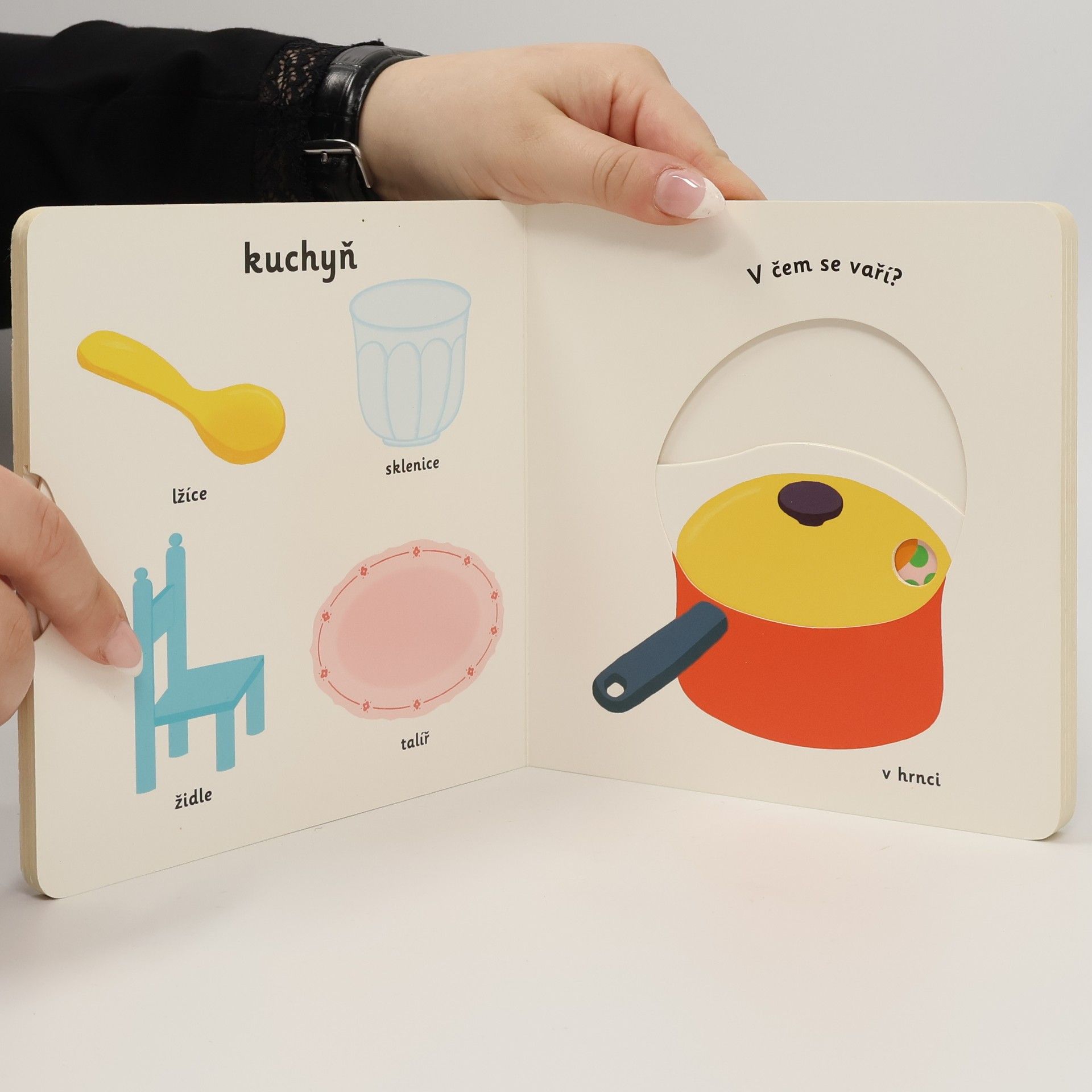 Poznávej prostředí, kde bydlíš, a nauč se názvy pro části domu, nábytek a výbavu! Leporelo pro nejmenší děti s posuvnými prvky a pestrými ilustracemi. Co všechno máme doma? Na co se díváme v obývacím pokoji? V čem si v kuchyni uvaříme? Kde máme srovnané oblečení? Kam se půjdeme před spaním vykoupat? Nauč se pojmenovat všechny části domu, nábytek a výbavu, která se může nacházet doma. Pestrobarevné ilustrace a posuvné prvky v tomto leporelu rozšiřují dětskou slovní zásobu zábavnou formou. Pohyblivé elementy v této knize rozvíjí jemnou motoriku dítěte a přispívají k živosti ilustrací. Knížka s prvky Montessori.