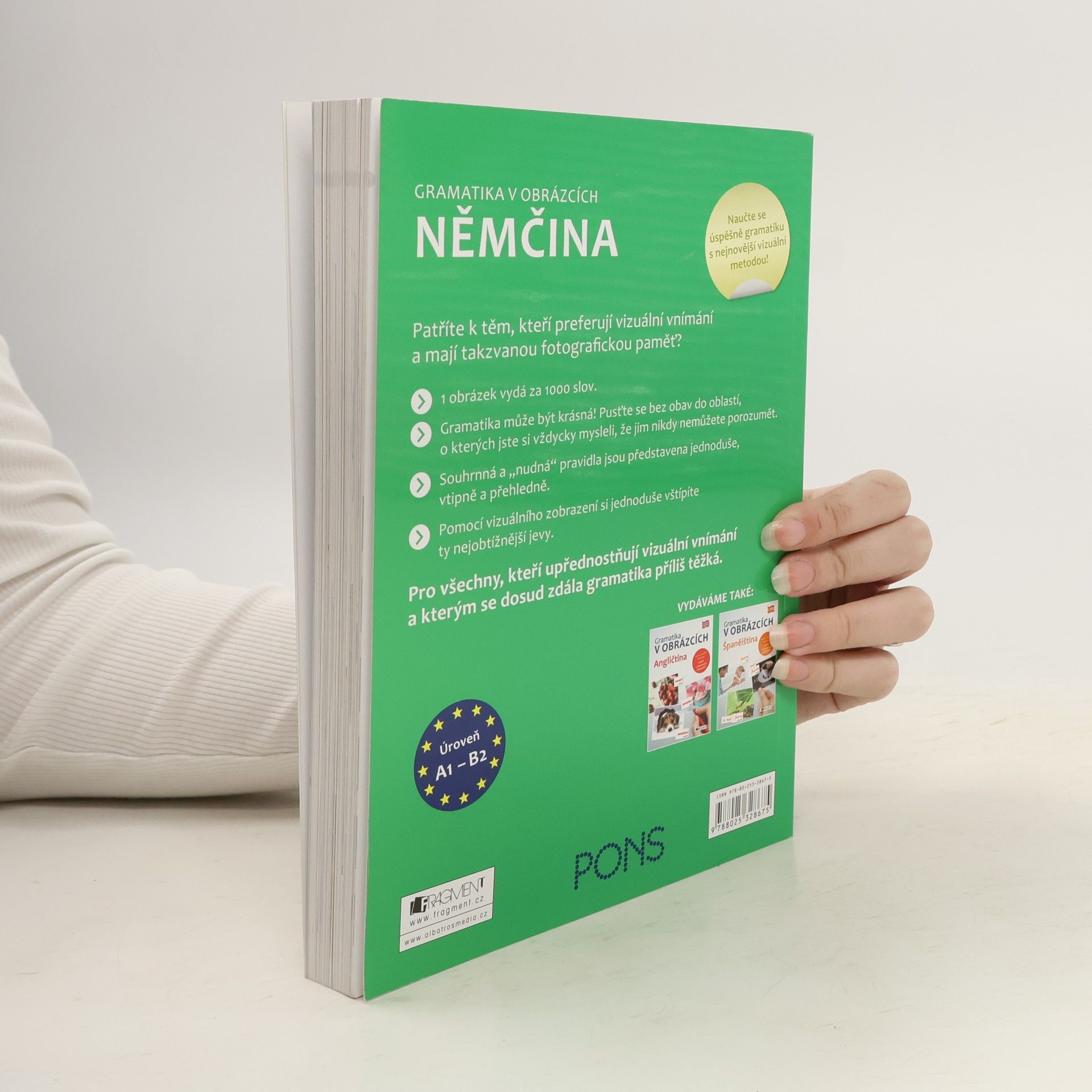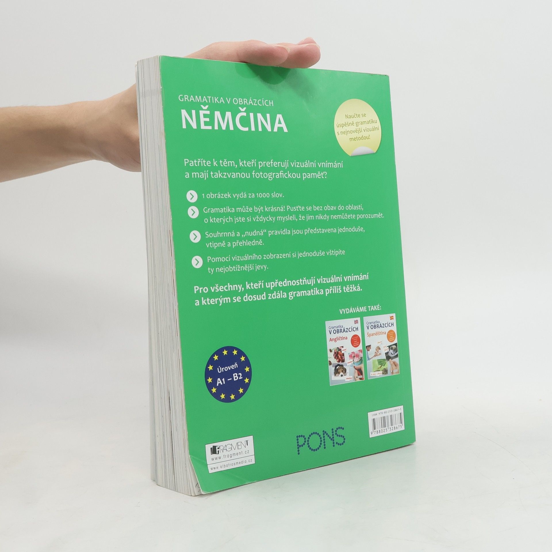 Patříte k těm, kteří preferují vizuální vnímání a mají takzvanou fotografickou paměť? Pro vás a všechny ostatní, které už nebaví staré nezáživné metody a chtějí se učit moderně a efektivně, je tato unikátní učebnice gramatiky. Výklad gramatických jevů je postaven na vtipně a rafinovaně vybraných příkladech, které doplňuje velké množství obrázků. Vše je podáno jednoduše, přehledně a srozumitelně. Snadno tak pochopíte i ty nejzáludnější gramatické jevy. Konečně učebnice, díky níž gramatiku pochopíte!