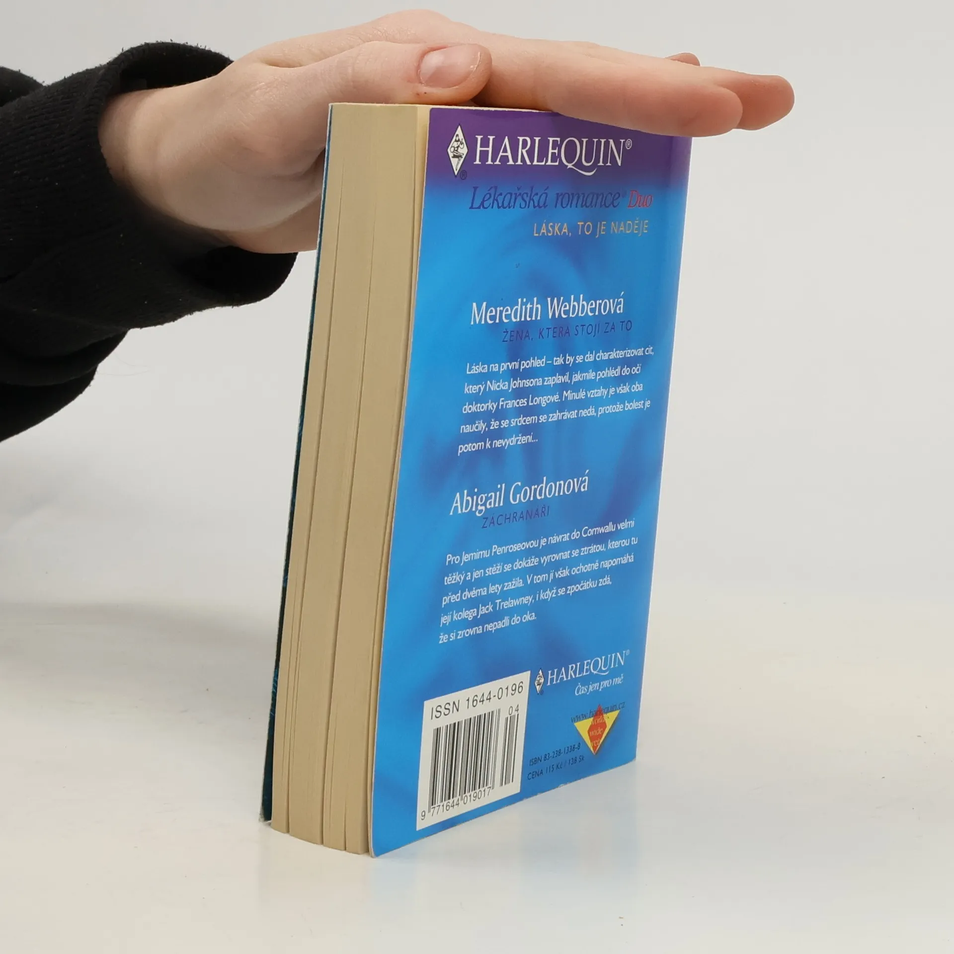 Žena, která stojí za to: I po šesti letech je Ginny půvabnou a pozornou ženou a pečlivou lékařkou, jak si jí Max pamatuje. V jejich očích se stále zrcadlí touha, ale nedokáže zapomenout, že jí tenkrát tak chladnokrevně opustil. Je na Maxovi, aby jí přesvědčil, že její bezpečí a štěstí leží v jeho náručí! Záchranáři: Vůči svému novému šéfovi, který ji zachránil syna, cítí Selina Sandersonová okamžité sympatie. Co má ale její šéf proti ženám? Kane si nepřeje nic jiného, než se stát součástí života Seliny. Jestli se ale dozví o tajemství jeho minulosti, určitě mu už nikdy nebude věřit...