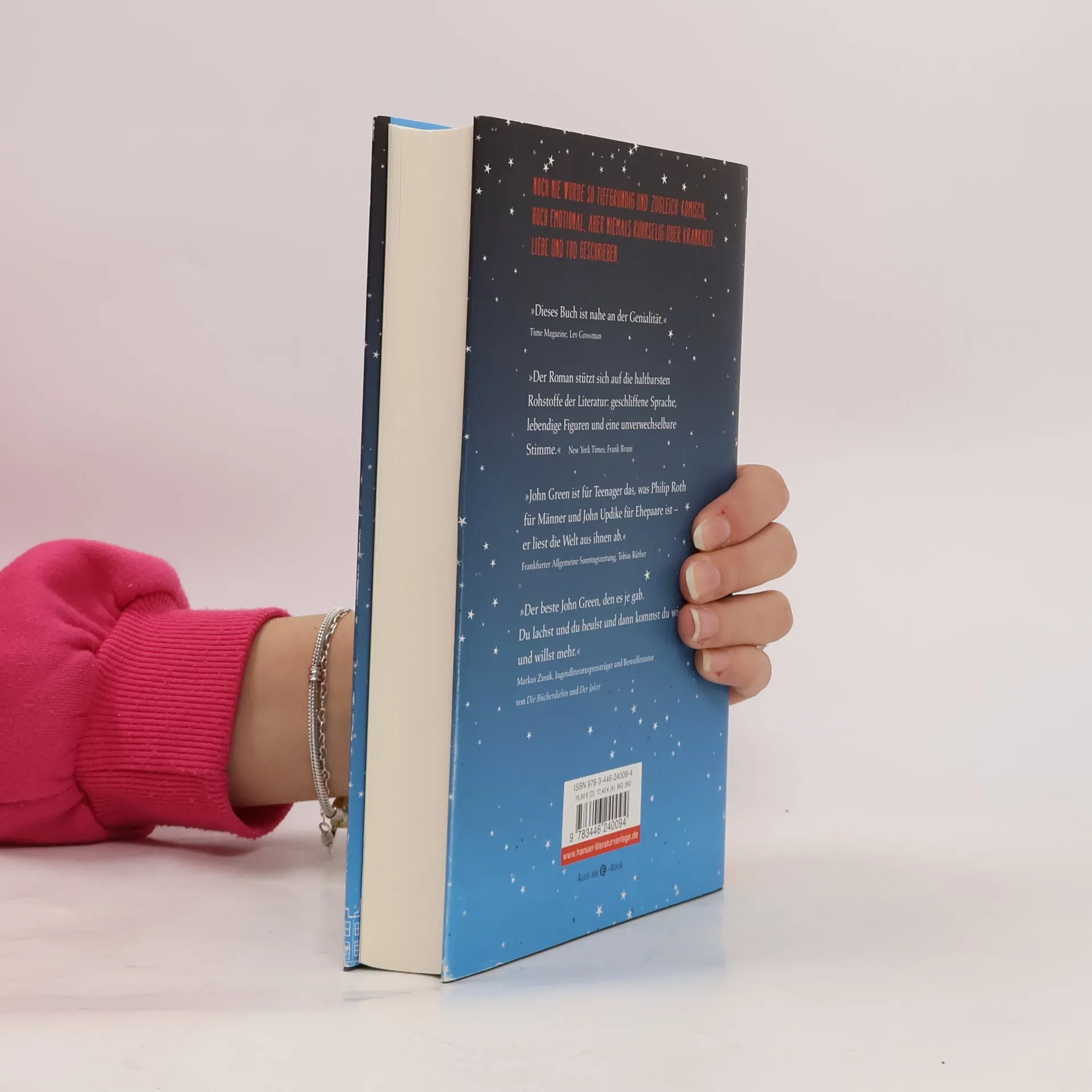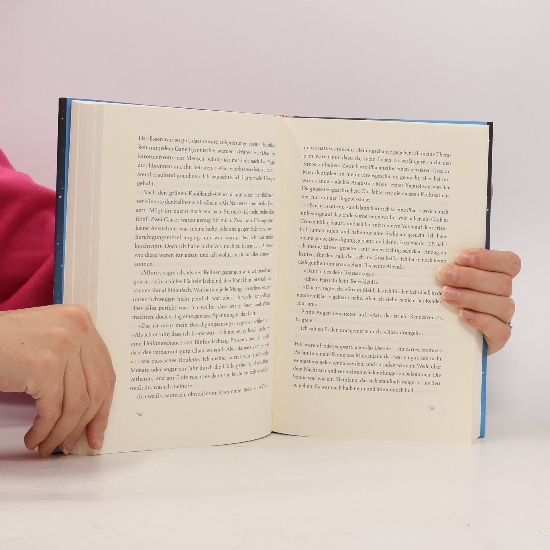 „Krebsbücher sind doof“, sagt die 16-jährige Hazel, die selbst Krebs hat. Sie will auf gar keinen Fall bemitleidet werden und kann mit Selbsthilfegruppen nichts anfangen. Bis sie in einer Gruppe auf den intelligenten, gut aussehenden und umwerfend schlagfertigen Gus trifft. Der geht offensiv mit seiner Krankheit um. Hazel und Gus diskutieren Bücher, hören Musik, sehen Filme und verlieben sich ineinander - trotz ihrer Handicaps und Unerfahrenheit. Gus macht Hazels großen Traum wahr: Gemeinsam fliegen sie nach Amsterdam, um dort Peter Van Houten zu treffen, den Autor von Hazels absolutem Lieblingsbuch. Ein tiefgründiges, emotionales und zugleich freches Jugendbuch über Krankheit, Liebe und Tod.