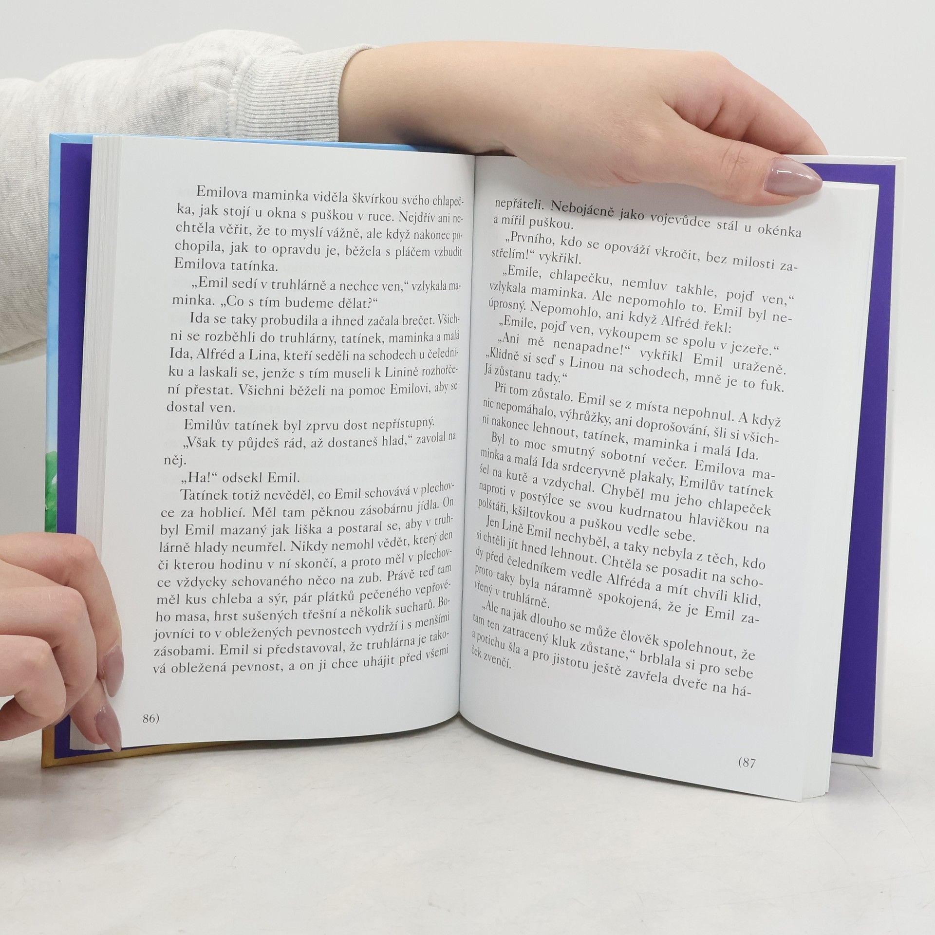 Emil je kluk jako buk, je mu pět let a je to pěkný divoch a paličák. Vypadá sice roztomile - modré oči, buclaté červené tvářičky, světlé kučeravé vlasy - úplný andílek! Ale ve švédské vesničce Lönneberze není jediného človíčka, který by neznal rošťáka Emila a který by se neobával jaho vykutálených kousků. A všichni také dobře vědí, že počet dřevěných panáčků vyrovnaných na poličce v truhlárně Emilova tatínka už přesáhl stovku. Když totiž Emílek něco provede, sedí za trest v truhlárně, přemýšlí údajně o svých prohřešcích a přitom zručně vyřezává legrační panáčky. Skutečně ovšem přemýšlí o nových skopičinách. Všech sto se jich do této knížky opravdu nevešlo, ale ty nejpodařenější v ní zaručeně jsou! Dotisk v r. 2008 ISBN 978-80-00-01222-3 (dotisk)... celý text