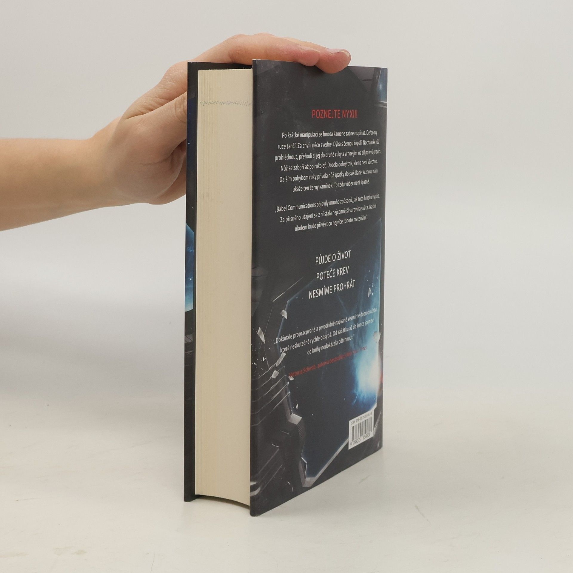Nejmocnější zbraň. Nejvyšší cena. Vítěz bere vše. Nyxia – nejcennější látka ve vesmíru dokáže proměnit váš bídný život v lesk a slávu. Ale při pokusu o její získání můžete ztratit víc než jen čas. Troufnete si kvůli ní i zemřít? Život Emmetta Atwatera rozhodně není procházka růžovou zahradou. Jeho matka bojuje s rakovinou, otec neustále pracuje, aby uživil rodinu. Jednoho dne se naskytne příležitost, jak rodinu navždy zabezpečit. Příležitost, která ho možná bude stát život. Přesto Emmet neváhá a přihlásí se do projektu Genesis 11, kde s dalšími chlapci a děvčaty z celého světa trénuje pro vesmírnou misi. Pouze osm z nich bude vybráno pro cestu na planetu Eden, kde se nachází vzácná látka Nyxia, a získá bohatství a slávu. Jenomže cesta za vítězstvím je může stát život. Emmett se bude muset postavit tváří v tvář konečnému rozhodnutí: vyhrát za každou cenu, nebo najít způsob, jak bojovat a zůstat dobrým člověkem. První díl vesmírné trilogie Nyxia vás vtáhne do svého nepředvídatelného příběhu s akčními scénami a rozmanitými postavami, které si zamilujete. Rozhodně by neměla uniknout pozornosti fanouškům knih jako Hunger Games, Labyrint: Útěk či Enderova hra.