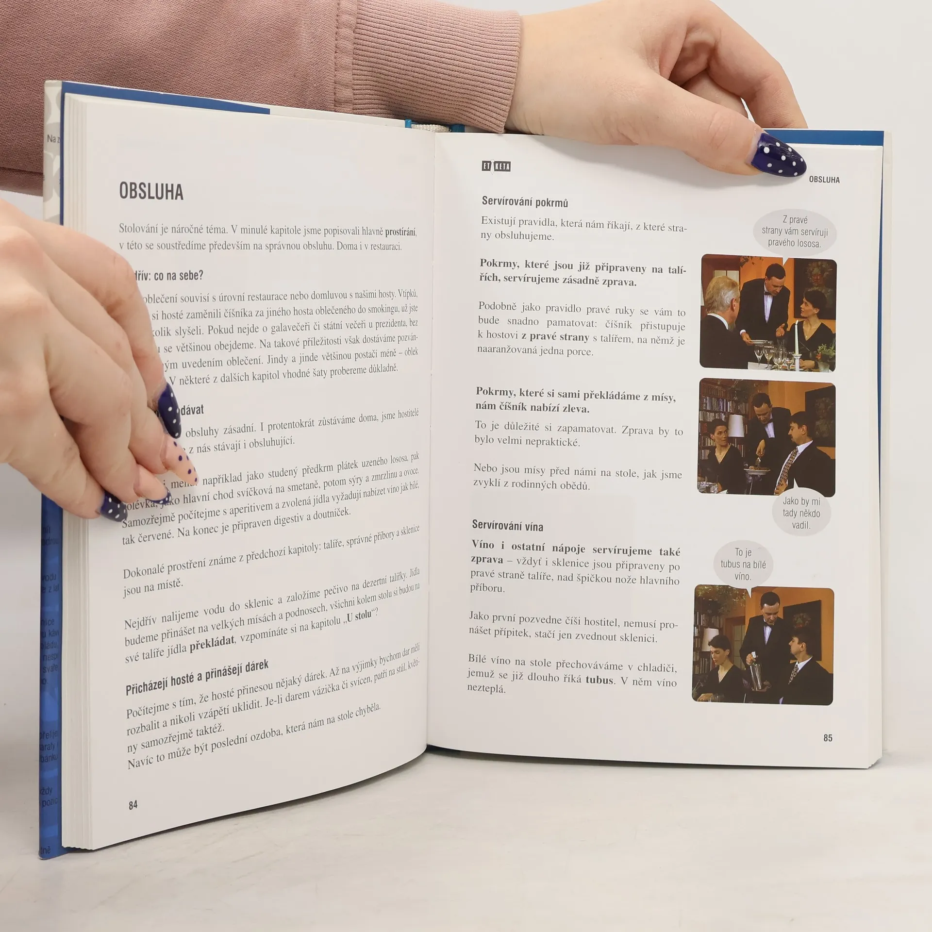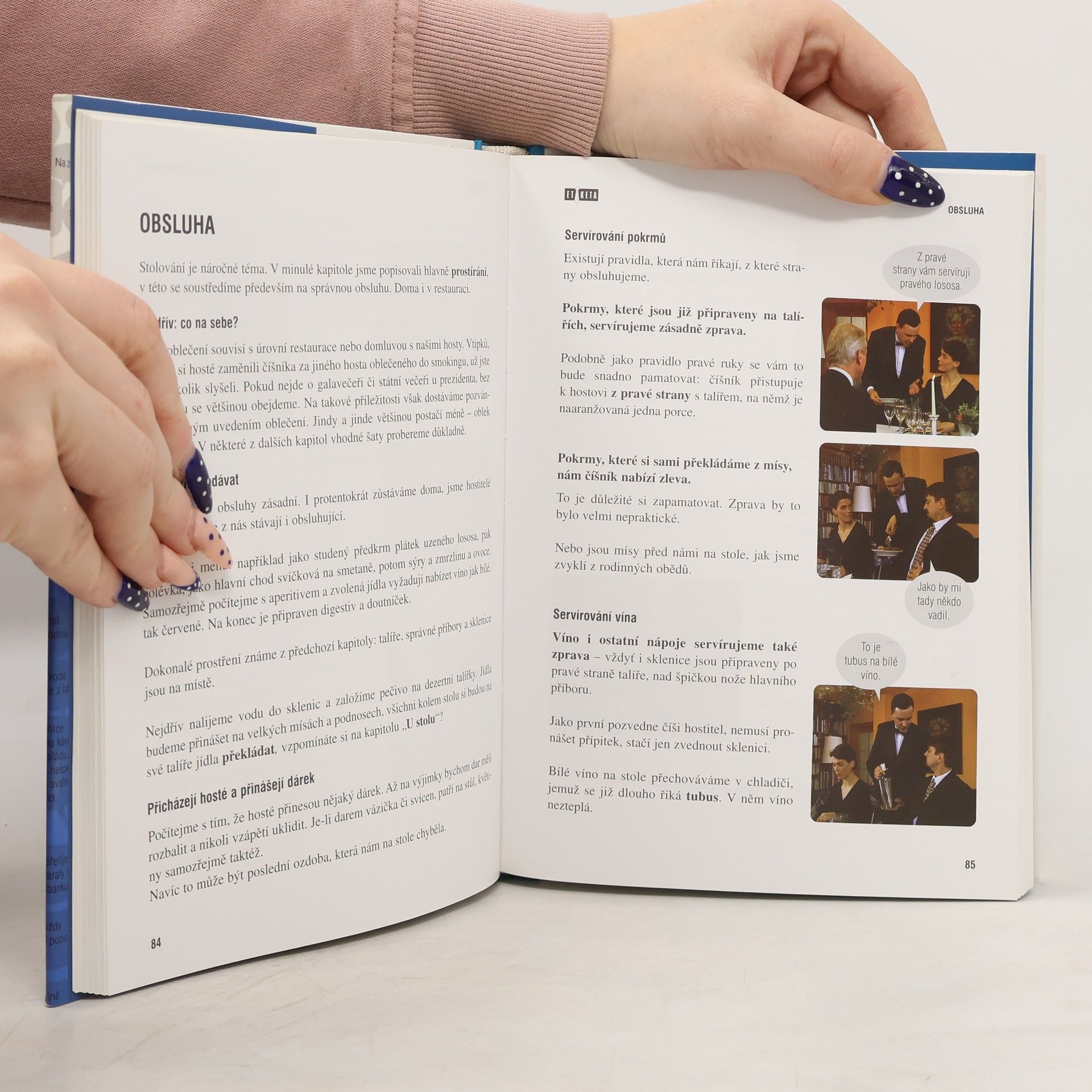Nabízí základní pravidla vhodného chování při nejrůznějších společenských událostech - od každodenních běžných aktivit po mimořádné příležitosti. Uvádí zásady vhodného oblékání, stolování, konverzace. Seznamuje s pravidly při podání ruky, oslovování, představování. Radí, jak se chovat při návštěvách přátel, při pracovních pohovorech, v dopravních prostředcích, a na různých společenských akcích jako jsou různé party, recepce, firemní prezentace, vernisáže, bály. Věnuje se také svatbě. Text doplňují fotografie ze stejnojmenného úspěšného televizního cyklu.
