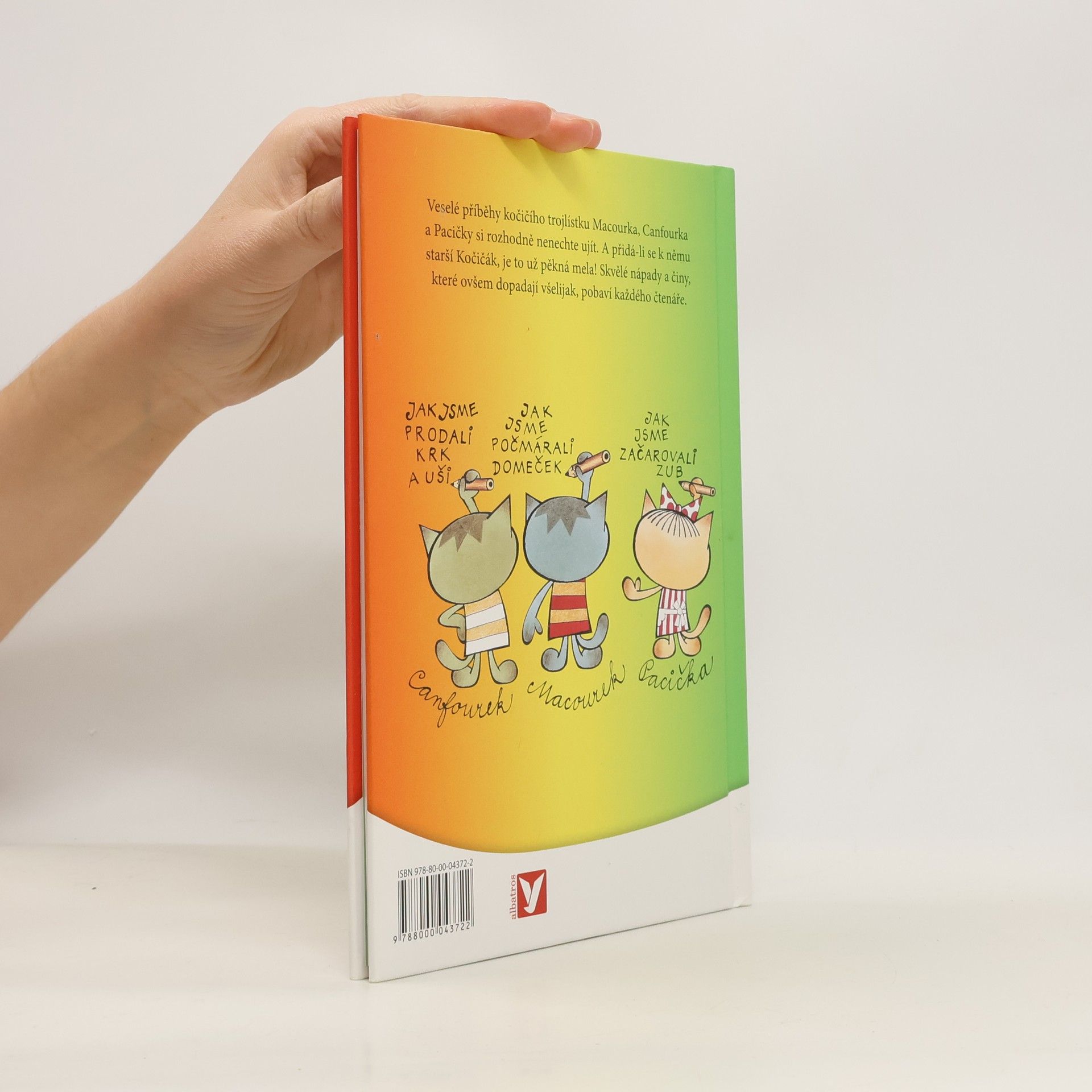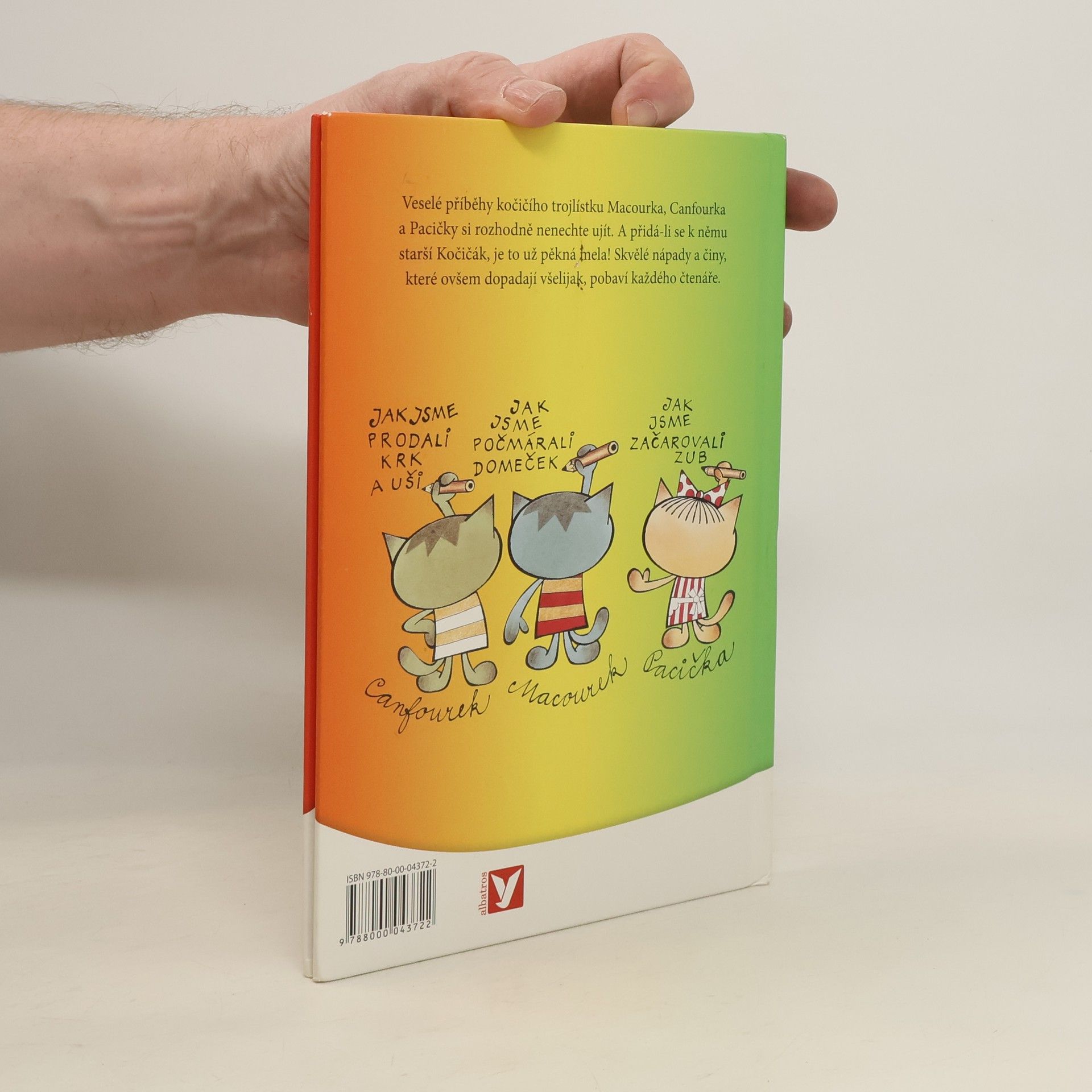 Dobrodružství kočičích kluků Macourka, Canfourka, kočičky Pacičky a jejich rošťáckého kamaráda Kočičáka už děti znají z televizních večerníčků. V knižní podobě vycházejí počtvrté a nad jejich lumpárnami se pobaví jistě i mnozí rodiče. Navíc v knížce najdete i oblíbenou písničku, která večerníček doprovází.