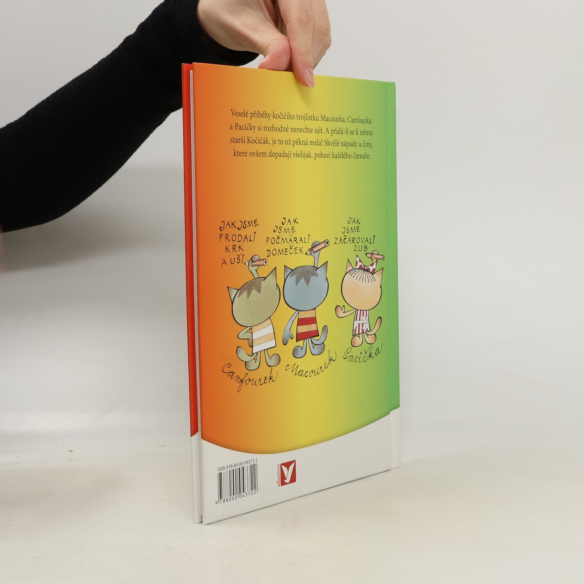 Dobrodružství kočičích kluků Macourka, Canfourka, kočičky Pacičky a jejich rošťáckého kamaráda Kočičáka už děti znají z televizních večerníčků. V knižní podobě vycházejí počtvrté a nad jejich lumpárnami se pobaví jistě i mnozí rodiče. Navíc v knížce najdete i oblíbenou písničku, která večerníček doprovází.