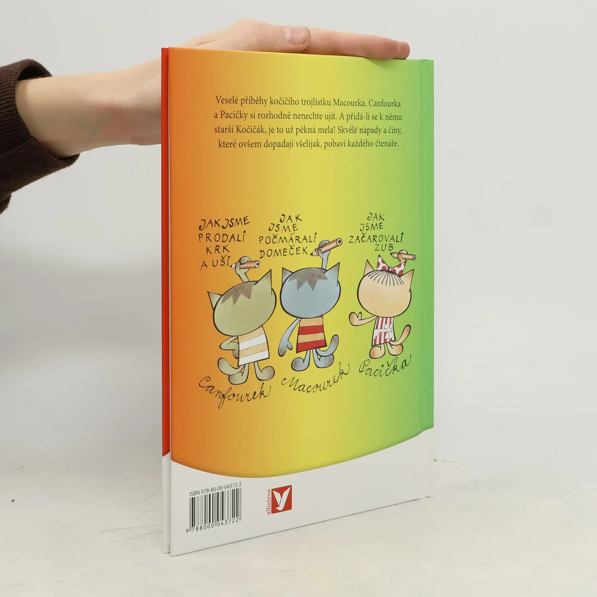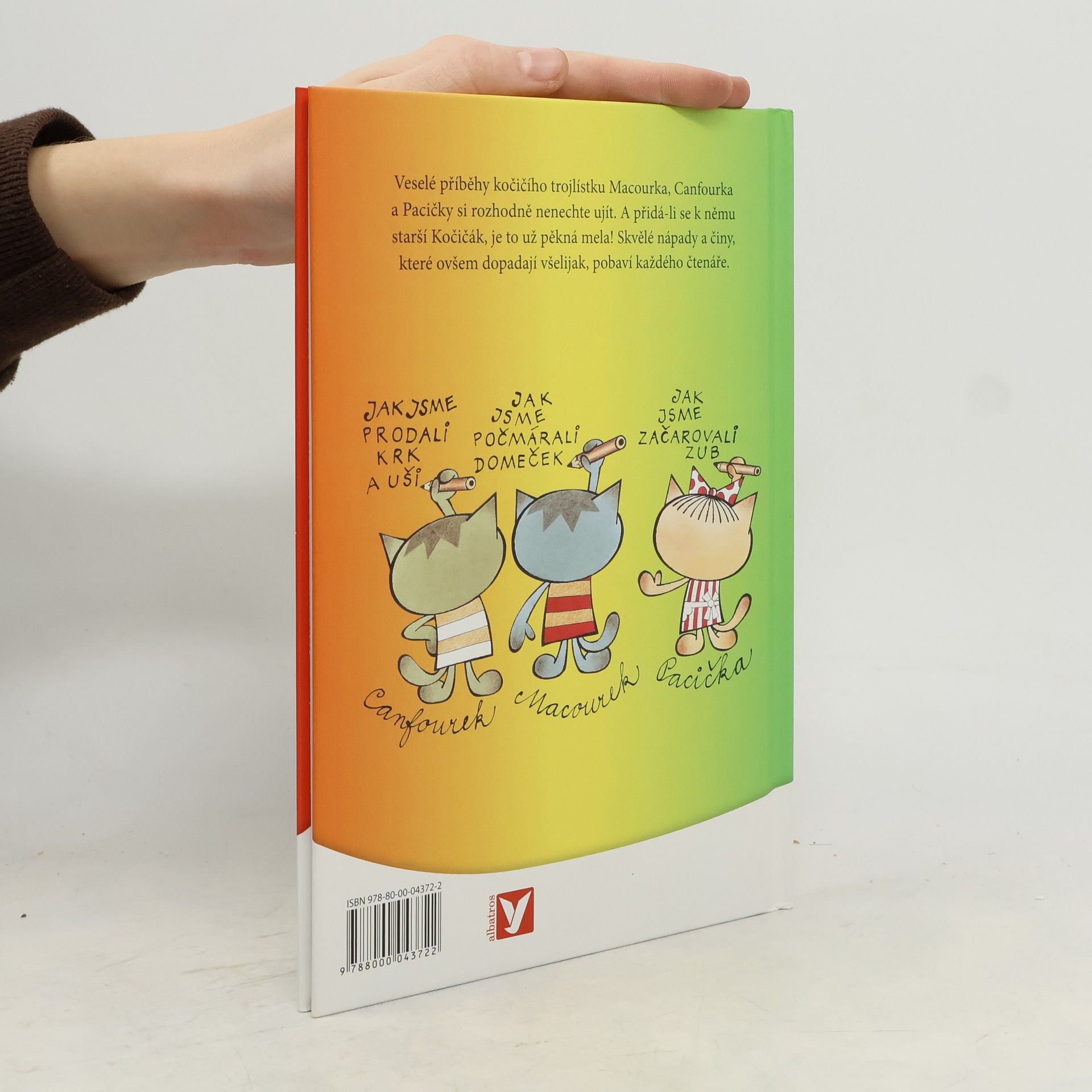 Dobrodružství kočičích kluků Macourka, Canfourka, kočičky Pacičky a jejich rošťáckého kamaráda Kočičáka už děti znají z televizních večerníčků. V knižní podobě vycházejí počtvrté a nad jejich lumpárnami se pobaví jistě i mnozí rodiče. Navíc v knížce najdete i oblíbenou písničku, která večerníček doprovází.