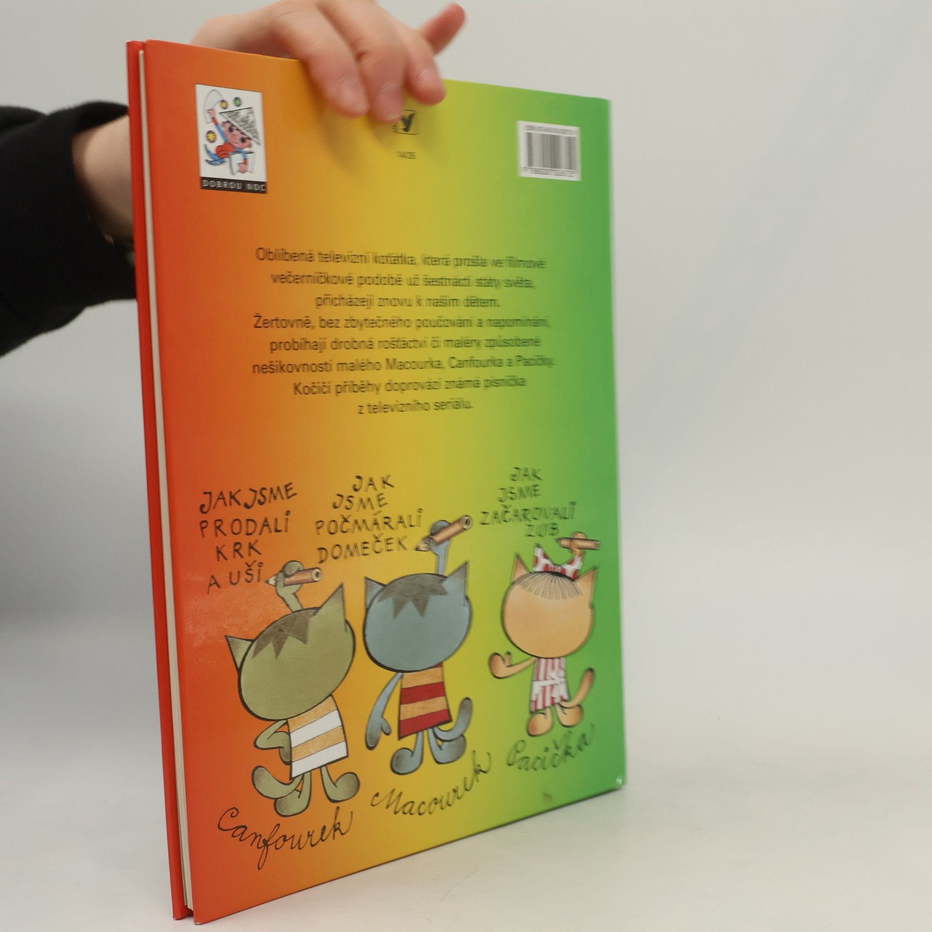 Dobrodružství kočičích kluků Macourka, Canfourka, kočičky Pacičky a jejich rošťáckého kamaráda Kočičáka už děti znají z televizních večerníčků. V knižní podobě vycházejí počtvrté a nad jejich lumpárnami se pobaví jistě i mnozí rodiče. Navíc v knížce najdete i oblíbenou písničku, která večerníček doprovází.