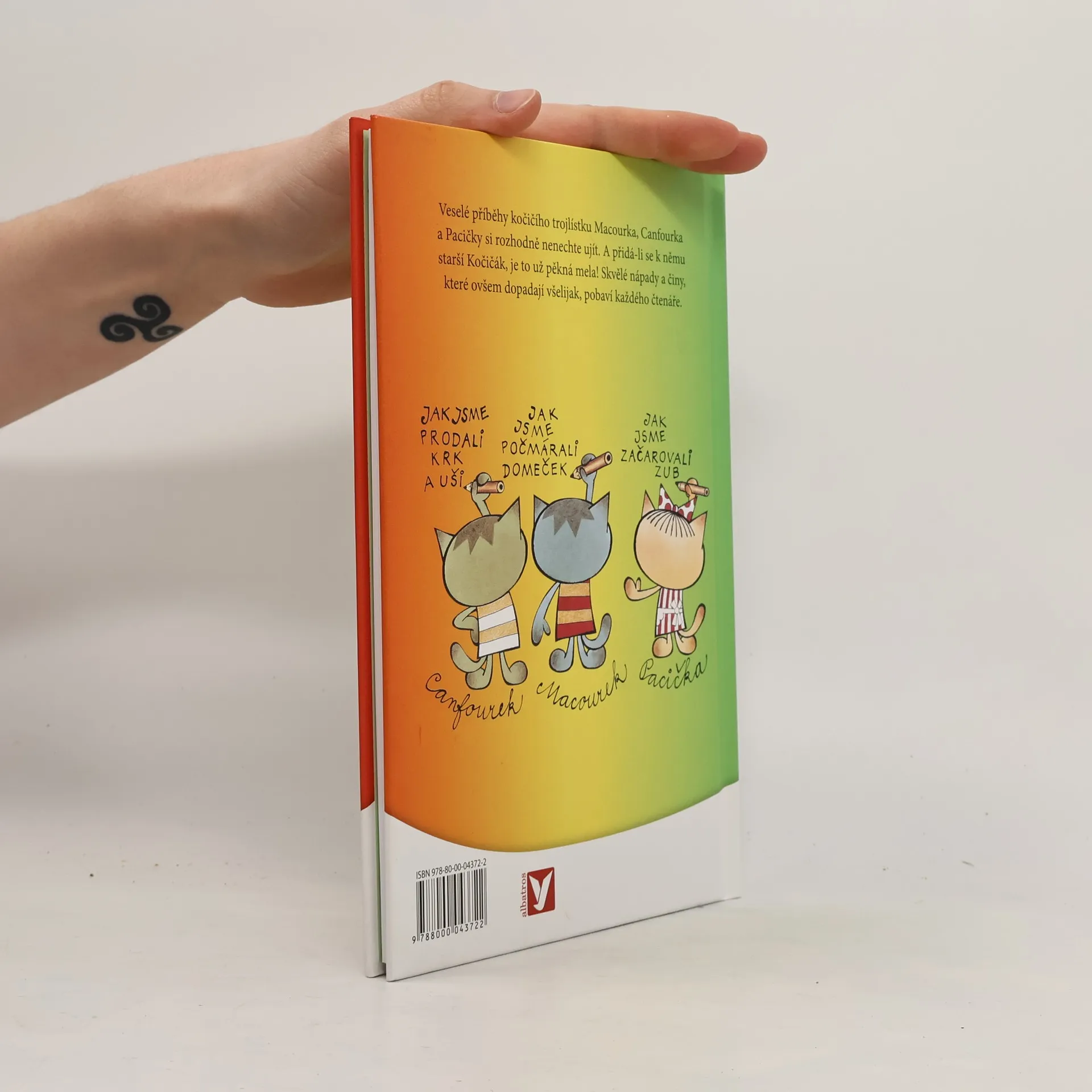 Dobrodružství kočičích kluků Macourka, Canfourka, kočičky Pacičky a jejich rošťáckého kamaráda Kočičáka už děti znají z televizních večerníčků. V knižní podobě vycházejí počtvrté a nad jejich lumpárnami se pobaví jistě i mnozí rodiče. Navíc v knížce najdete i oblíbenou písničku, která večerníček doprovází.