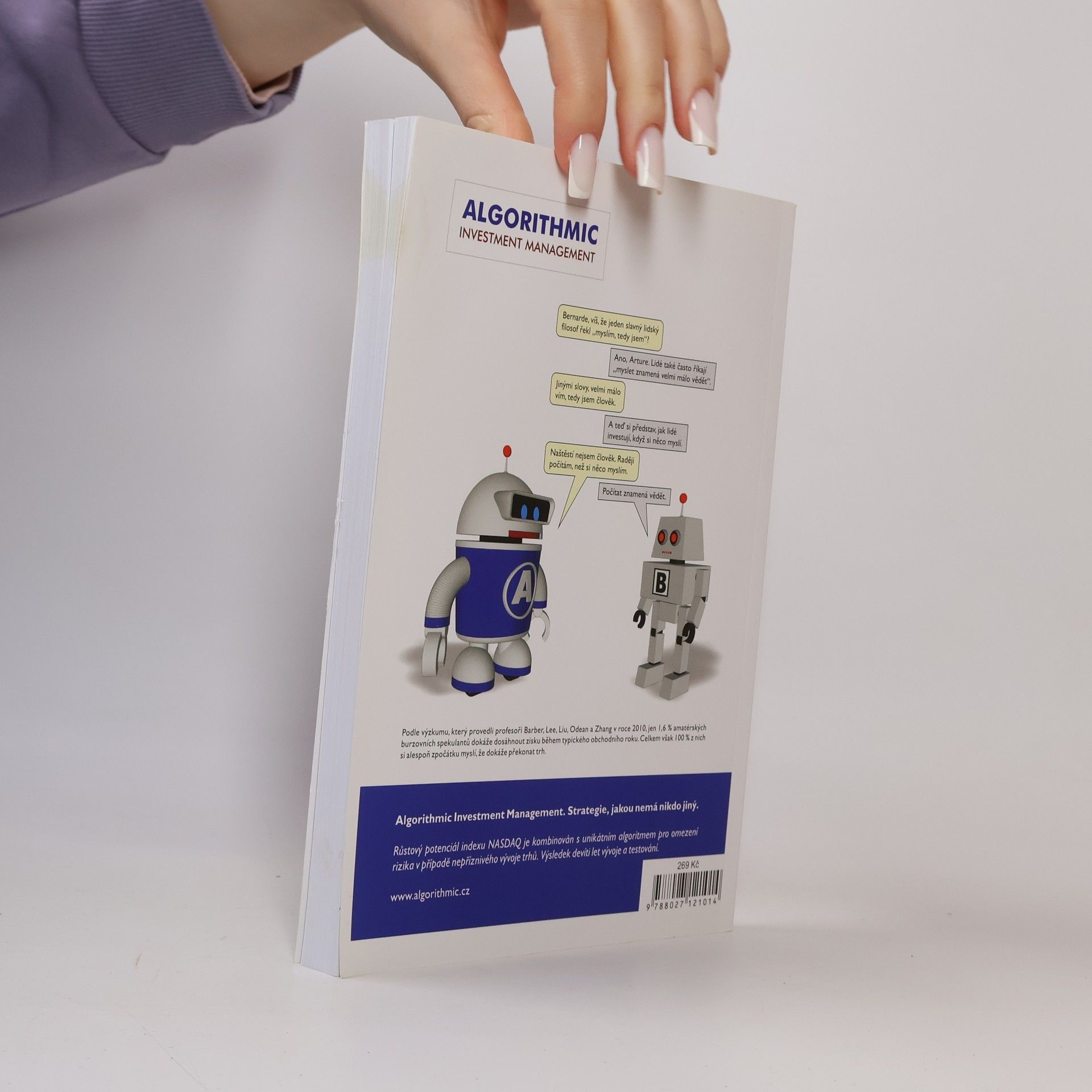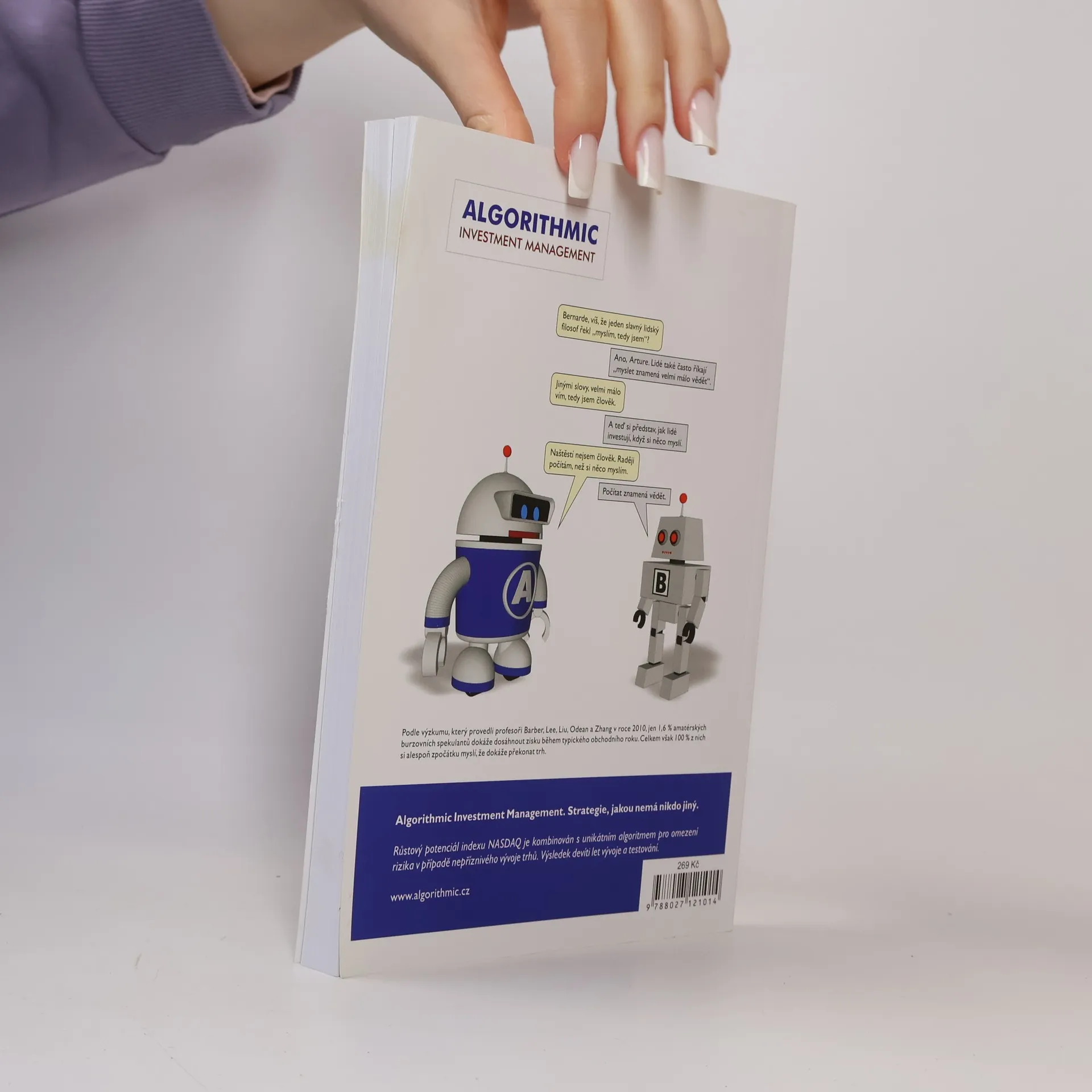 Publikace stručně a přístupně shrnuje více než 25 let autorových zkušeností na kapitálových trzích. Srozumitelnosti pomáhá bohatá grafická příloha. Nevyžaduje žádné zvláštní znalosti matematiky, makroekonomie nebo účetnictví. Autor věnuje velkou pozornost obvyklým chybám začínajících i pokročilých investorů, rovněž i různým druhům rizik. Zabývá se ekonomickými a politickými faktory, které ovlivňují výnosnost trhů akcií a pevně úročených cenných papírů. Podstatnou část obsahu tvoří kapitoly věnované algoritmickému investování. V této části knihy je popsáno, jaké přístupy fungují, jaké nefungují a proč. Dozvíte se o limitech umělé inteligence a o výhodách disciplinovaného investičního přístupu. Část kapitoly je věnována i práci se softwarovým produktem Robot Investment Calculator.
