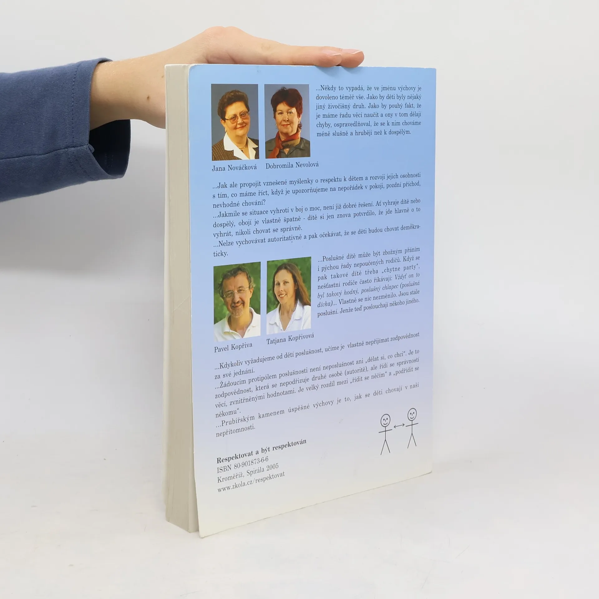 Výchova dětí založená na uplatňování moci a síly je vyčerpávající a přitom málo účinná. Má negativní dopady nejen na plnění každodenních oprávněných požadavků, ale také na sebeúctu, rozvoj osobnosti a vzájemné vztahy všech zúčastněných stran. Totéž platí i pro komunikaci dospělých mezi sebou, kdykoliv v ní převládne vzájemný boj o moc. Kniha Respektovat a být respektován je určena všem, kteří se snaží o partnerský, respektující přístup ve výchově, vzdělávání a v mezilidských vztazích. Nabízí jednak postupy a dovednosti okamžitě využitelné v praxi, jednak pohled na širší souvislosti mocenského a respektujícího pojetí výchovy, vzdělávání a komunikace. Je využitelná nejen pro rodiče a učitele, ale pro všechny, kteří chtějí investovat úsilí do rozšíření repertoáru svých komunikačních dovedností pro zvládání běžných i náročných životních situací. Přirozeným důsledkem osvojení těchto postupů a dovedností je udržení vlivu i dobrých vztahů a vzrůstající pocit vnitřního klidu, sebeúcty a kompetentnosti. Autoři jsou známí jako lektoři stejnojmenného kurzu, který je již řadu let organizován po celé ČR.