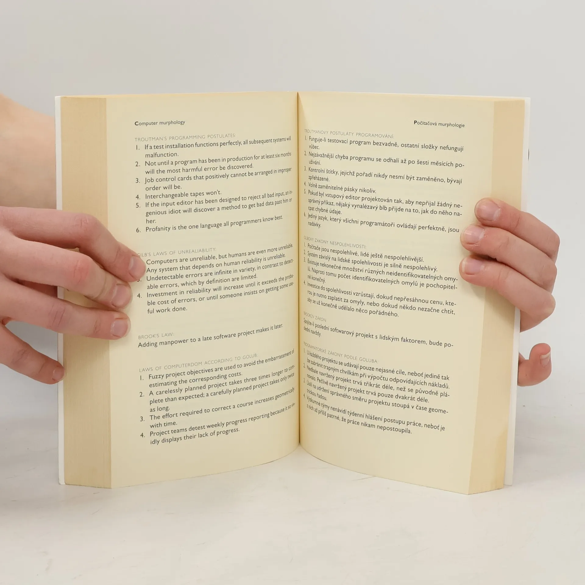 Bilingvní vydání humorných, moudrých a duchaplných výroků potrhlých technologů, byrokratů, stoupenců sociální spravedlnosti a bojovníků proti společenským zlořádům odvozených z klasické murphologie.