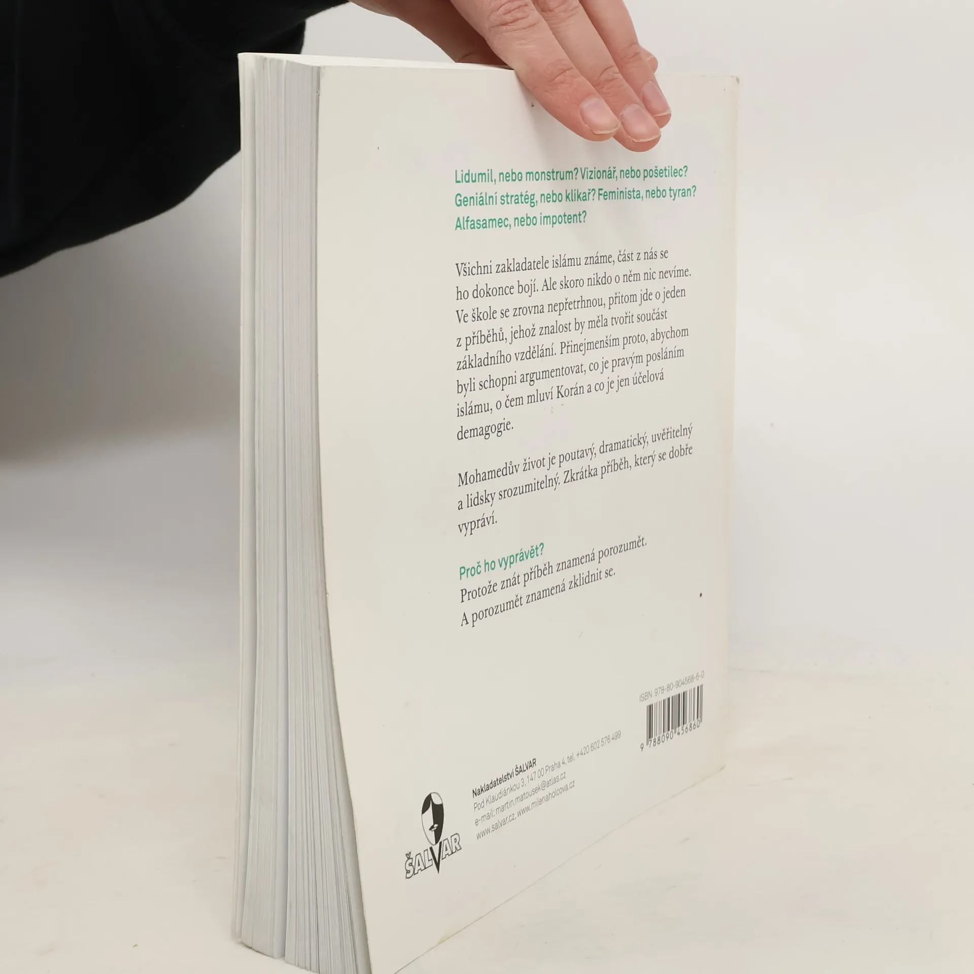 Troufalý portrét zakladatele islámu. Miliarda a půl lidí ho vyznává, stejně tolik se ho bojí, ale jen hrstka o něm něco ví. Na jedné straně bitvy ve jménu Alláha, na druhé devět manželek. Záruka, že se nebudete nudit. Příběh Mohameda, zakladatele islámu, jedné z klíčových postav světového kulturního dědictví, je vyprávěn srozumitelně, korektně a zábavně pro dospělé, s návodem, jak jej případně převyprávět. Holcová, sama babička sedmi vnoučat, má ověřené, že vyprávění funguje, zejména na děti. Jde o přímý kontakt, můžete do něj promítnout svoji osobnost, herecké schopnosti, názory. Zvlášť, když jste s dětmi sami někde na dovolené nebo na výletě. Nejen, že navodíte pocit blízkosti, ve skutečnosti není lepší výchovné páky, než vyprávění v napínavém okamžiku přerušit a pokračovat až po splnění nějakého úkolu. Poslechnou. A ochotně. Na osudu Mohameda čtenáři - a následně i děti - porozumí i základním principům, zásadám a zákonům islámu, seznámí se v kostce s obsahem Koránu. Autorka vyvrací některé mýty, používané islamofily i islamofoby, to vše přístupnou formou, v kapitolách plných napětí a zvratů. Nedocenitelná knížka pro multikulturní poznávání všech generací, pro školy, mimoškolní a prázdninové aktivity, určitě pro vnímavé, inteligentní čtenáře.