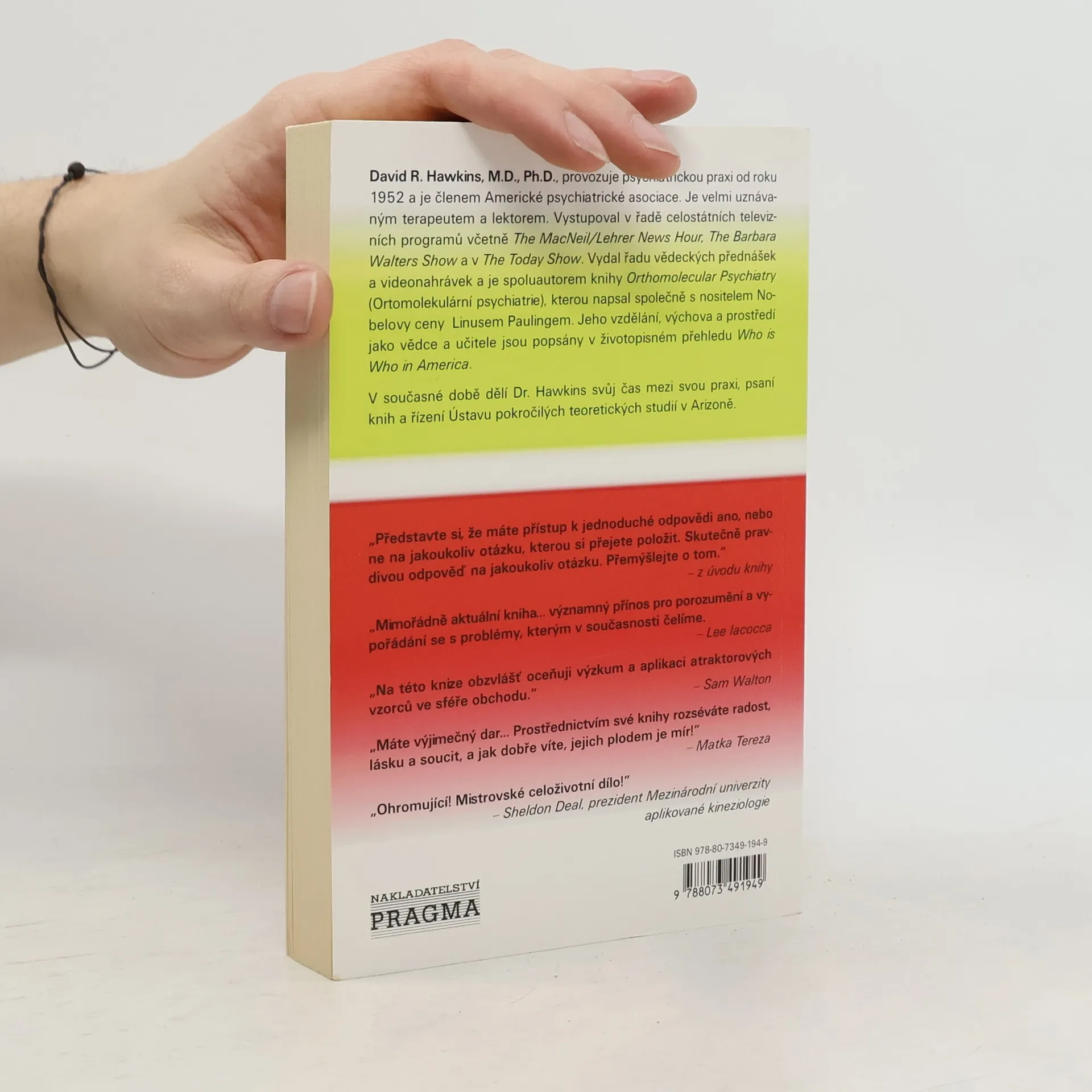 Představte si, že máte přístup k jednoduché odpovědi ano, nebo ne na jakoukoli otázku, kterou si přejete položit. Skutečně pravdivou odpověď na jakoukoli otázku. Člověk si myslí, že žije díky silám, které má pod kontrolou, ale ve skutečnosti je ovládán mocí z netušených zdrojů, mocí, nad níž nemá žádnou kontrolu. Během dvaceti let Hawkins dokázal analyzovat celé spektrum úrovní lidského vědomí a vytvořil fascinující mapu geografie lidských zkušeností. Tato "anatomie vědomí" vytváří profil celého lidského druhu, umožňující provést úplnou analýzu emocionálního a duchovního vývoje jedinců, společnosti a rasy. Tak důkladný a rozsáhlý pohled přináší novou úroveň porozumění člověka při objevování vesmíru.