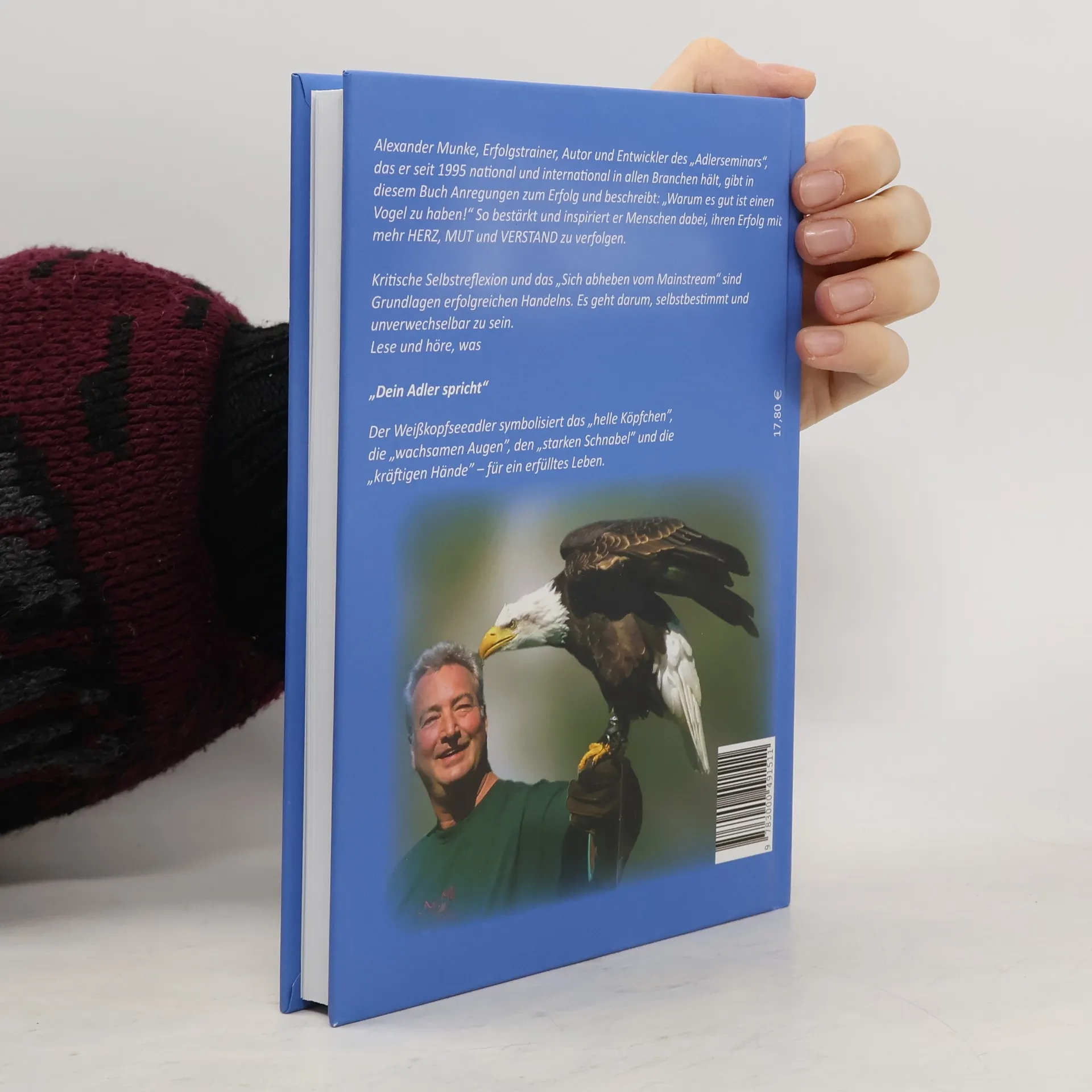 Alexander Munke, Erfolgstrainer, Autor und Entwickler des „Adlerseminars“, das er seit 1995 national und international in allen Branchen hält, gibt in diesem Buch Anregungen zum Erfolg und beschreibt, „Warum es gut ist, einen Vogel zu haben“! So bestärkt und inspiriert er Menschen dabei, ihren Erfolg mit mehr HERZ, MUT und VERSTAND zu verfolgen. Kritische Selbstreflexion und das „Sich abheben vom Mainstream“ sind Grundlagen erfolgreichen Handelns. Es geht darum, selbstbestimmt und unverwechselbar zu sein. Lese und höre, was „Dein Adler spricht“! Der Weißkopfseeadler symbolisiert das „helle Köpfchen“, die „wachsamen Augen“, den „starken Schnabel“ und die „kräftigen Hände“ für ein erfülltes Leben.