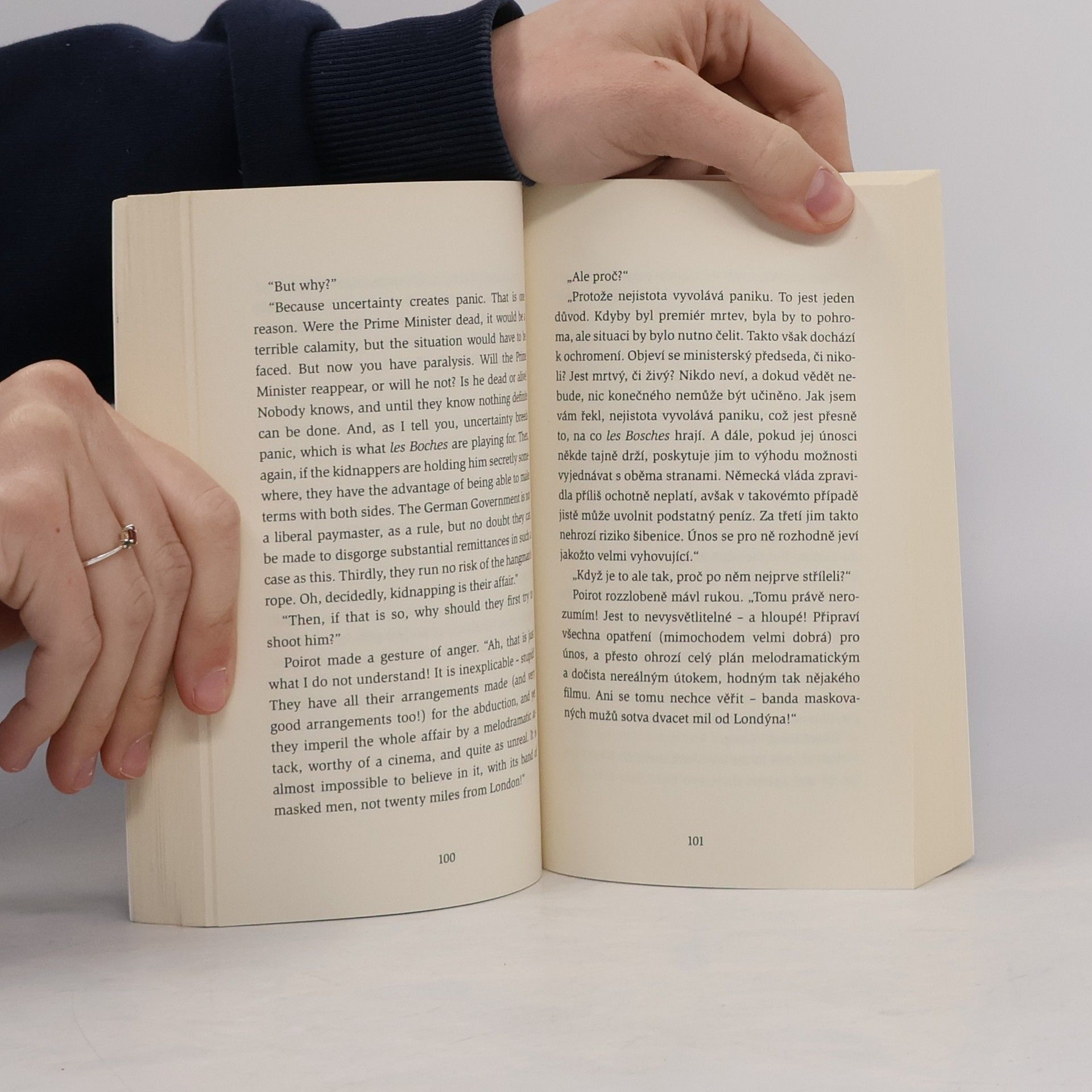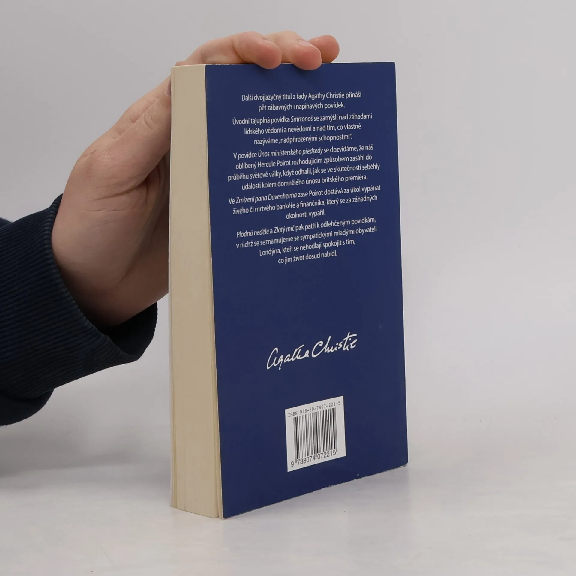 Zrcadlový anglicko-český text. Ve Zmizení pana Davenheima dostává náš oblíbený Hercule Poirot za úkol vypátrat živého či mrtvého bankéře a finančníka, který se za záhadných okolností vypařil. V povídce Únos ministerského předsedy se dozvídáme, že Poirot rozhodujícím způsobem zasáhl do průběhu světové války, když odhalil, jak se ve skutečnosti seběhly události kolem domnělého únosu britského premiéra. Tajuplná povídka Smrtonoš se zamýšlí nad záhadami lidského vědomí a nevědomí a nad tím, co vlastně nazýváme „nadpřirozenými schopnostmi“. Plodná neděle a Zlatý míč pak patří k odlehčeným povídkám, v nichž se seznamujeme se sympatickými mladými obyvateli Londýna, kteří se nehodlají spokojit s tím, co jim život dosud nabídl.