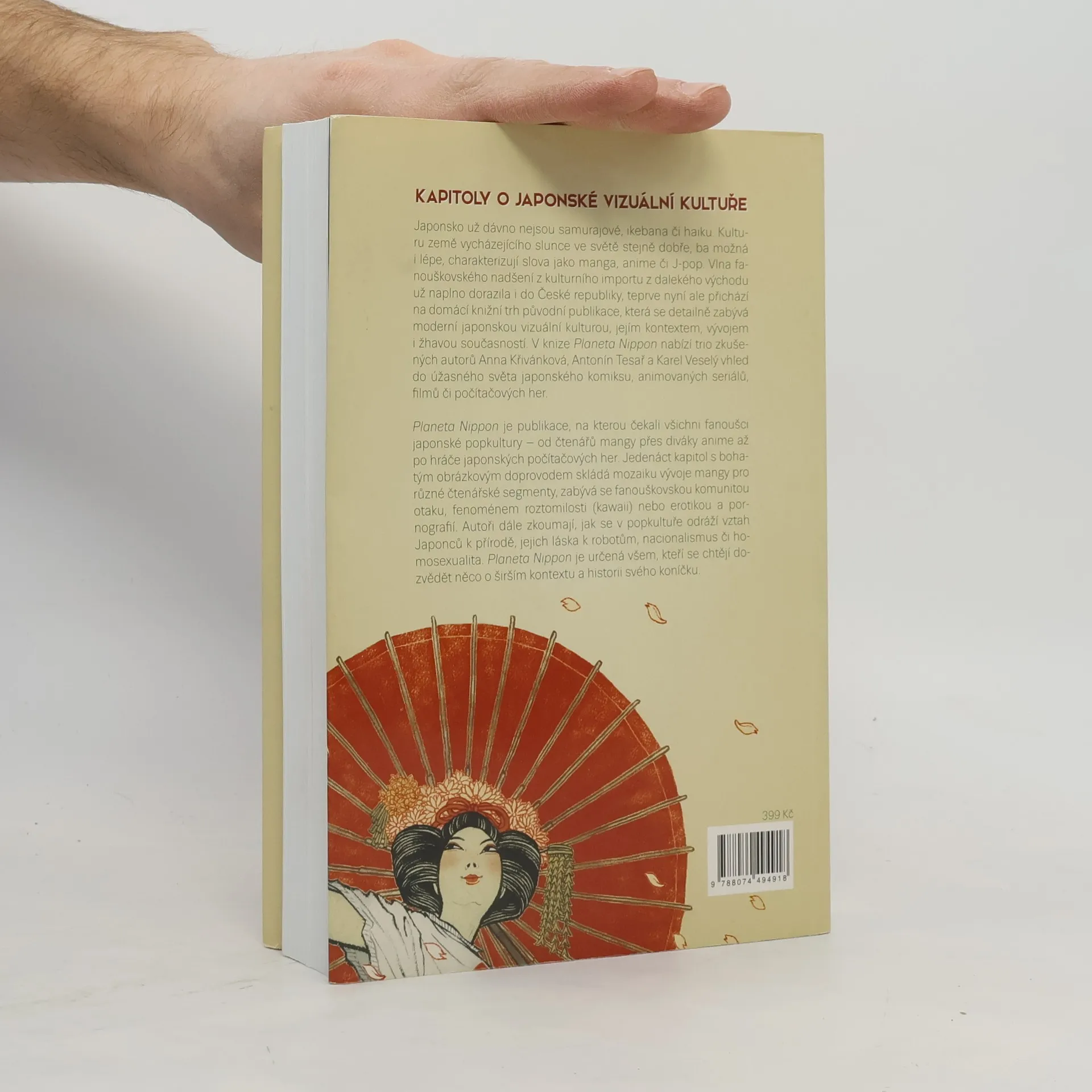 Japonsko už dávno nejsou jenom samurajové, ikebana či haiku. Kulturu země vycházejícího slunce ve světě stejně dobře – ba možná i lépe – charakterizují slova jako manga, anime či J-pop. Vlna fanouškovského nadšení z kulturního importu z dalekého východu už naplno dorazila i do České republiky, teprve nyní ale přichází na domácí knižní trh původní publikace, která se detailně zabývá moderní japonskou vizuální kulturou, jejím kontextem, vývojem i žhavou současností. V knize Planeta Nippon nabízí trio zkušených autorů Anna Křivánková, Antonín Tesař a Karel Veselý vhled do úžasného světa japonského komiksu, animovaných seriálů, filmů či počítačových her. Planeta Nippon je publikace, na kterou čekali všichni fanoušci japonské popkultury – od čtenářů mangy přes diváky anime až po hráče japonských počítačových her. Jedenáct kapitol s bohatým obrázkovým doprovodem skládá mozaiku vývoje mangy pro různé čtenářské segmenty, zabývá se fanouškovskou komunitou otaku, fenoménem roztomilosti (kawaii) nebo erotikou a pornografií. Autoři dále zkoumají, jak se v popkultuře odráží vztah Japonců k přírodě, jejich láska k robotům, nacionalismus či homosexualita. Planeta Nippon je určená všem, kteří se chtějí dozvědět něco o širším kontextu a historii svého koníčku.