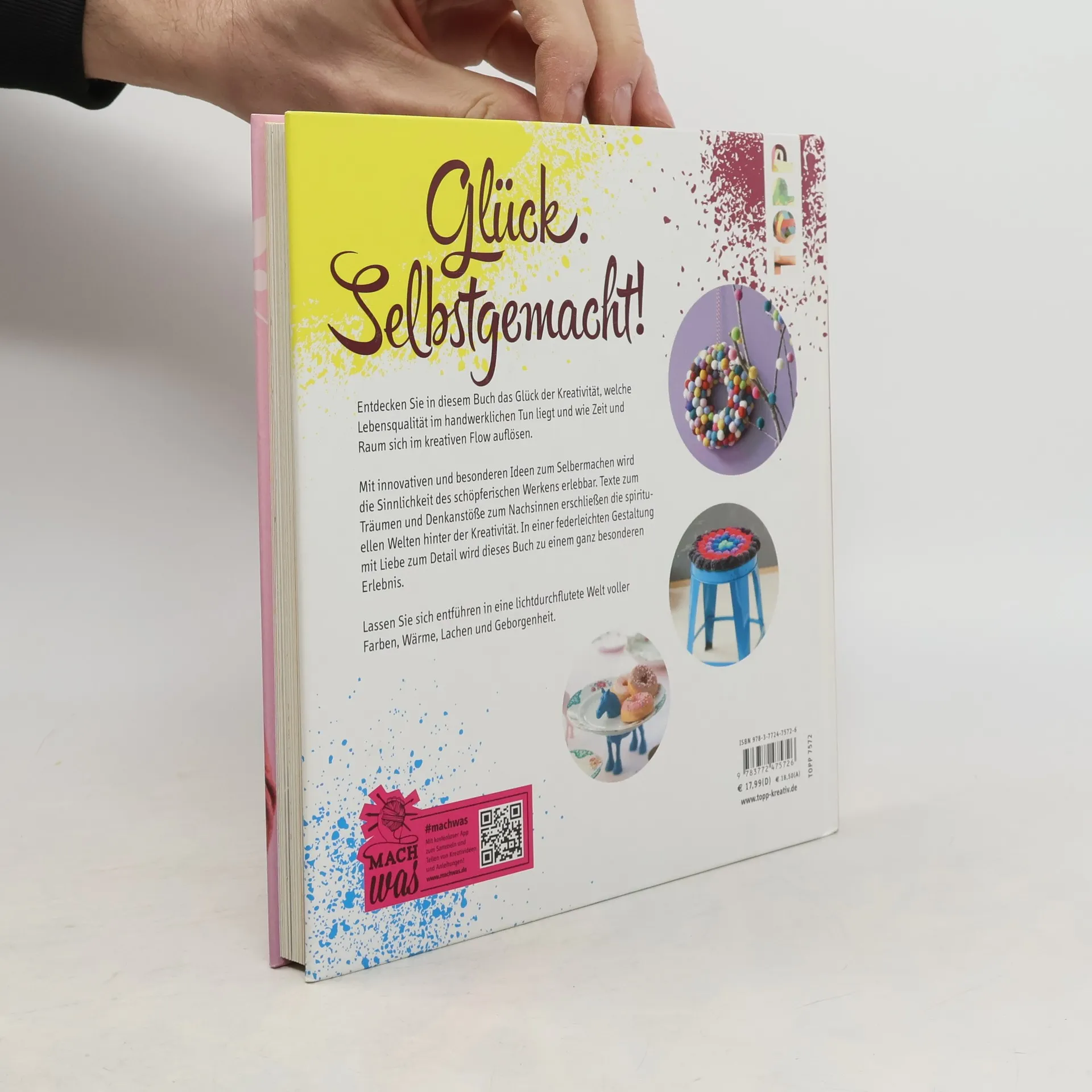 Entdecken Sie in diesem Buch das Glück der Kreativität, welche Lebensqualität im handwerklichen Tun liegt und wie Zeit und Raum sich im kreativen Flow auflösen. Mit innovativen und besonderen Ideen zum Selbermachen wird die Sinnlichkeit des schöpferischen Werkens erlebbar. Beliebte Techniken wie Filzen, Arbeiten mit Holz, Papierfalten, Beton gießen, Nähen und Stricken werden anhang von Step-Fotos leicht verständlich erklärt. Texte zum Träumen und Gedanken zum Nachsinnen erschließen die spirituellen Welten hinter der Kreativität. Mit einer federleichten Gestaltung mit Liebe zum Detail wird dieses Buch zu einem ganz besonderen Erlebnis. Lassen Sie sich entführen in eine lichtdurchflutete Welt voller Farben, Wärme, Lachen und Geborgenheit.