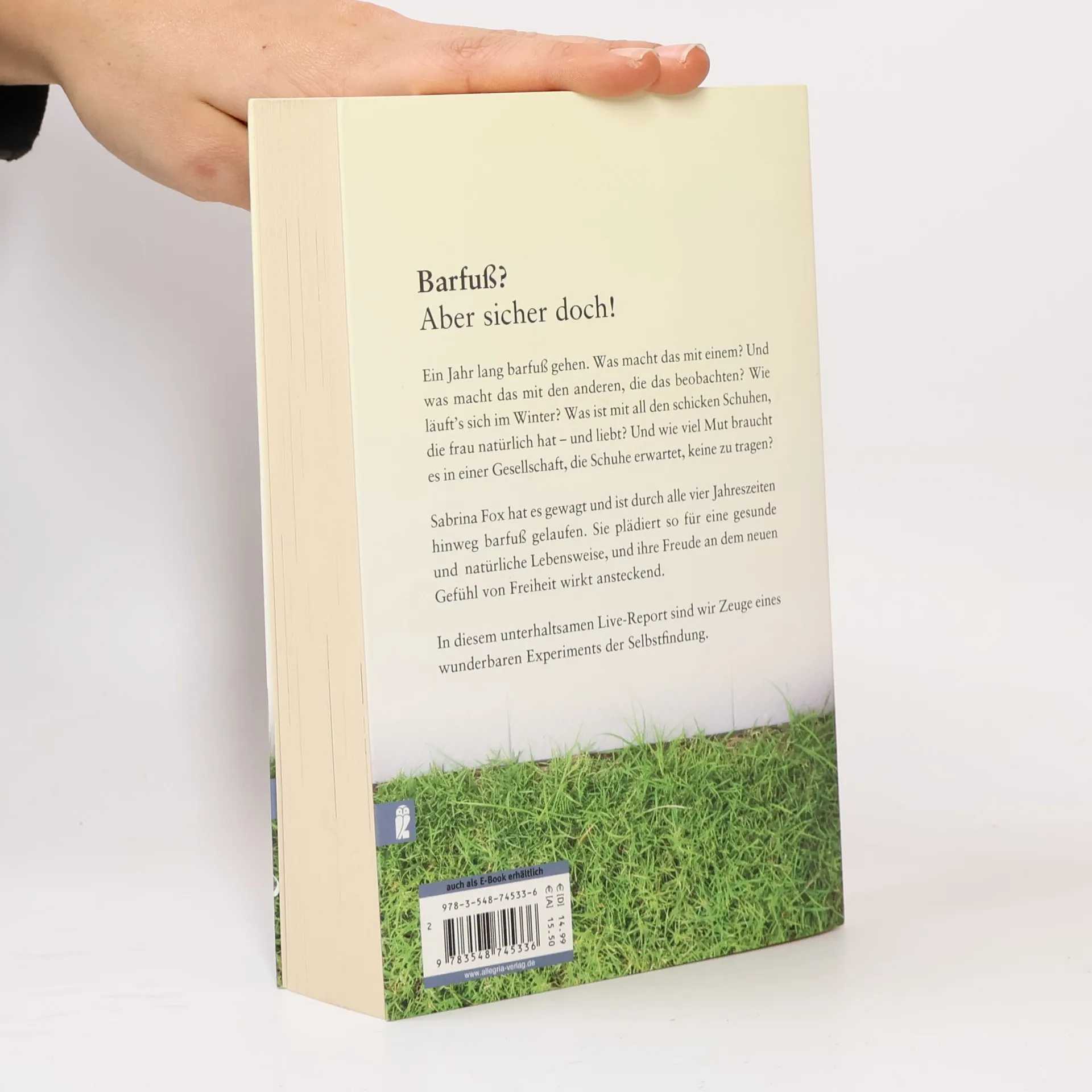 Worum geht es? Ein Jahr lang barfuß gehen. Was macht das mit einem? Und was macht das mit den anderen, die das beobachten? Wie läuft’s sich im Winter? Was ist mit all den schicken Schuhen, die frau natürlich hat – und liebt? Wie viel Mut braucht es in einer Gesellschaft, die Schuhe erwartet, keine zu tragen? Mit diesem Buch plädiert die Autorin für eine gesunde und natürliche Lebensweise. Konsequentes Barfußlaufen stellt unsere Lebensgewohnheiten in Frage und ermöglicht ein ganz neues Gefühl von Freiheit. Was ist besonders? Dieses Buch ist ein Live-Report über ein wunderbares Experiment der Selbstfindung.