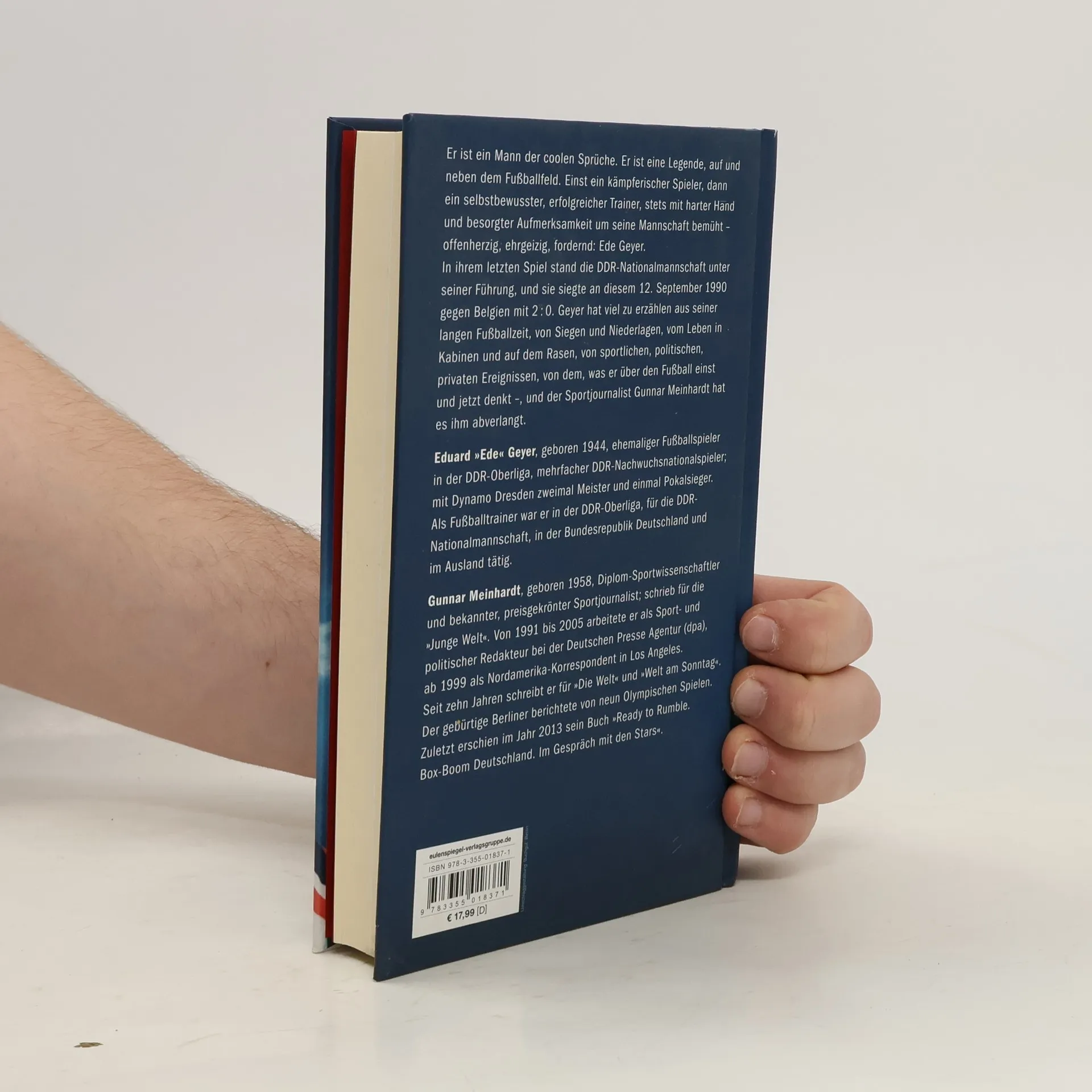 Vor 25 Jahren, am 12. September 1990, fand in Belgien das letzte Länderspiel der DDR-Nationalmannschaft statt. Sie gewann mit 2: 0, nicht zuletzt dank ihres Trainers Eduard Geyer. Für ihn ist das heute ein Anlass zurückzublicken: auf Fußball und Leistungssport, auf menschliche und gesellschaftliche Entwicklungen im Osten Deutschlands. Und 'Ede' Geyer nimmt kein Blatt vor den Mund. Im Gespräch mit dem Sportjournalisten Gunnar Meinhardt klopft er nicht nur Sprüche, sondern äußert sich nachdenklich und kritisch, auch wenn er über die eigene Karriere spricht, die ihn vom Stürmer bei Dynamo Dresden (ab 1968) bis zum Trainer von Energie Cottbus (ab 1994) führte. Eduard Geyer war stets ein Mann der klaren Worte: 'Es hat nicht viel funktioniert in der DDR, aber der Leistungssport hat funktioniert.'