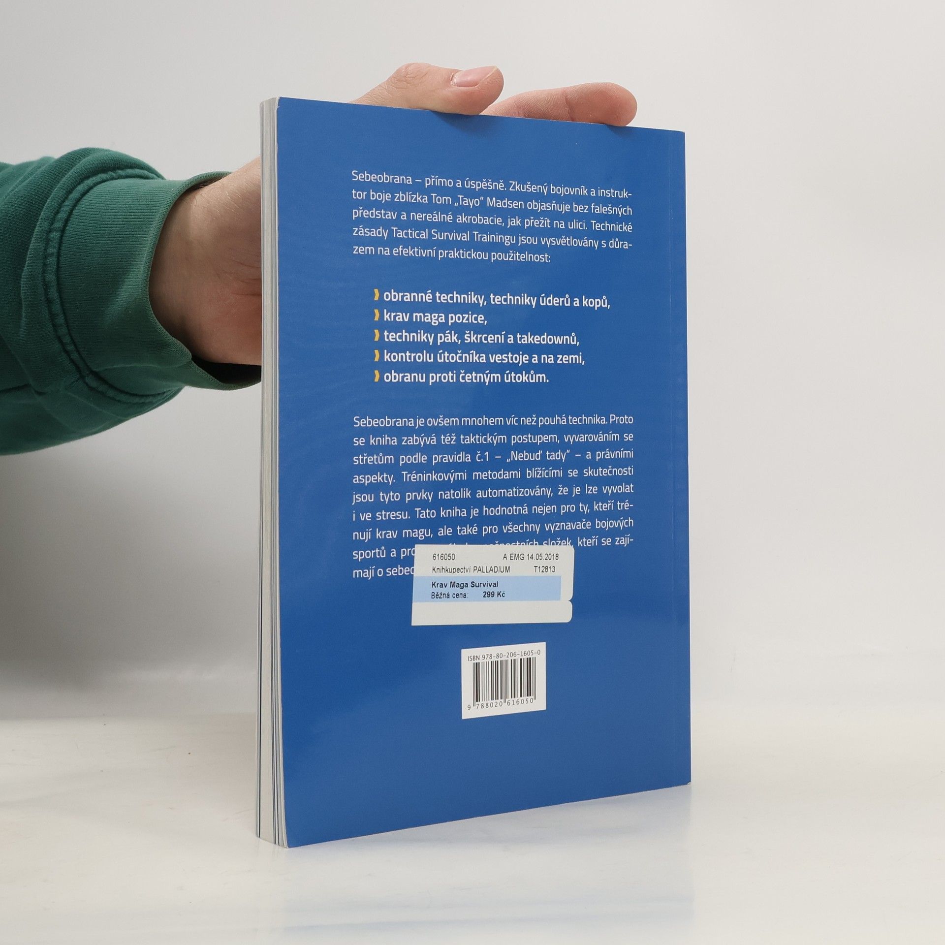 Sebeobrana - přímo a úspěšně. Zkušený bojovník a instruktor boje zblízka Tom Jayo" Madsen objasňuje bez falešných představ a nereálné akrobacie, jak přežít na ulici. Technické zásady Tactical Survival Tramingu jsou vysvětlovány s důrazem na efektivní praktickou použitelnost obranné techniky, techniky úderů a kopů, krav maga pozice, techniky pák, škrcení a takedownů, kontrolu útočníka vestoje a na zemi obranu proti četným útokům. Sebeobrana je ovsem mnohem víc než pouhá technika. Proto se kniha zabývá též taktickým postupem, vyvarováním se střetům podle pravidla č. 1 - „Nebuď tady" - a právními aspekty. Tato kniha je hodnotná nejen pro ty, kteří trénují krav magu, ale také pro všechny vyznavače bojových sportů a profesionály bezpečnostních složek, kteří se zajímají o sebeobranu.