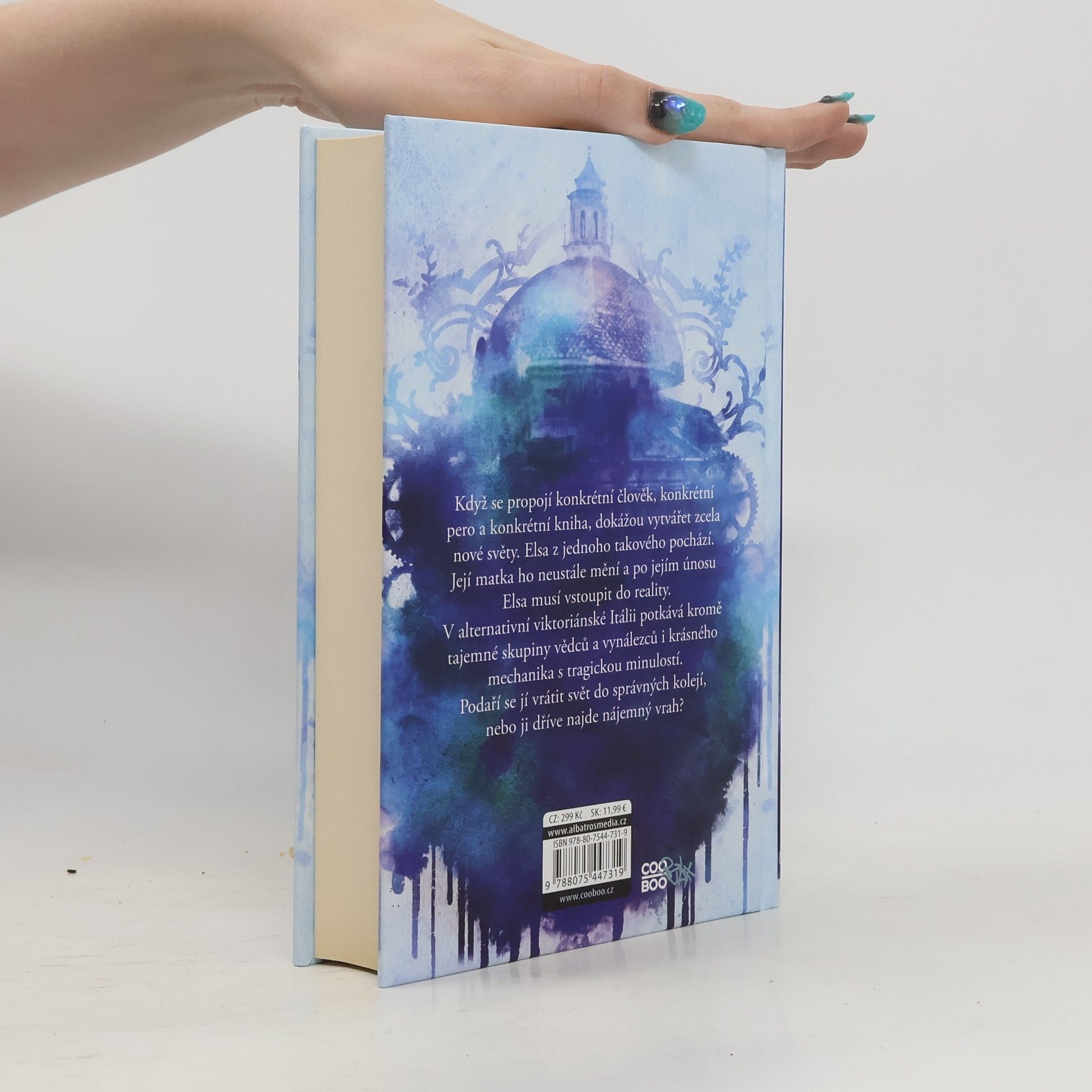 Je možné napsat svět se špatným koncem? První díl steampunk-fantasy série Když se propojí konkrétní člověk, konkrétní pero a konkrétní kniha, dokážou vytvářet zcela nové světy. Elsa z jednoho takového pochází. Její matka ho neustále mění a po jejím únosu Elsa musí vstoupit do reality. V alternativní viktoriánské Itálii potkává kromě tajemné skupiny vědců a vynálezců i krásného mechanika s tragickou minulostí. Podaří se jí vrátit svět do správných kolejí, nebo ji dříve najde nájemný vrah?