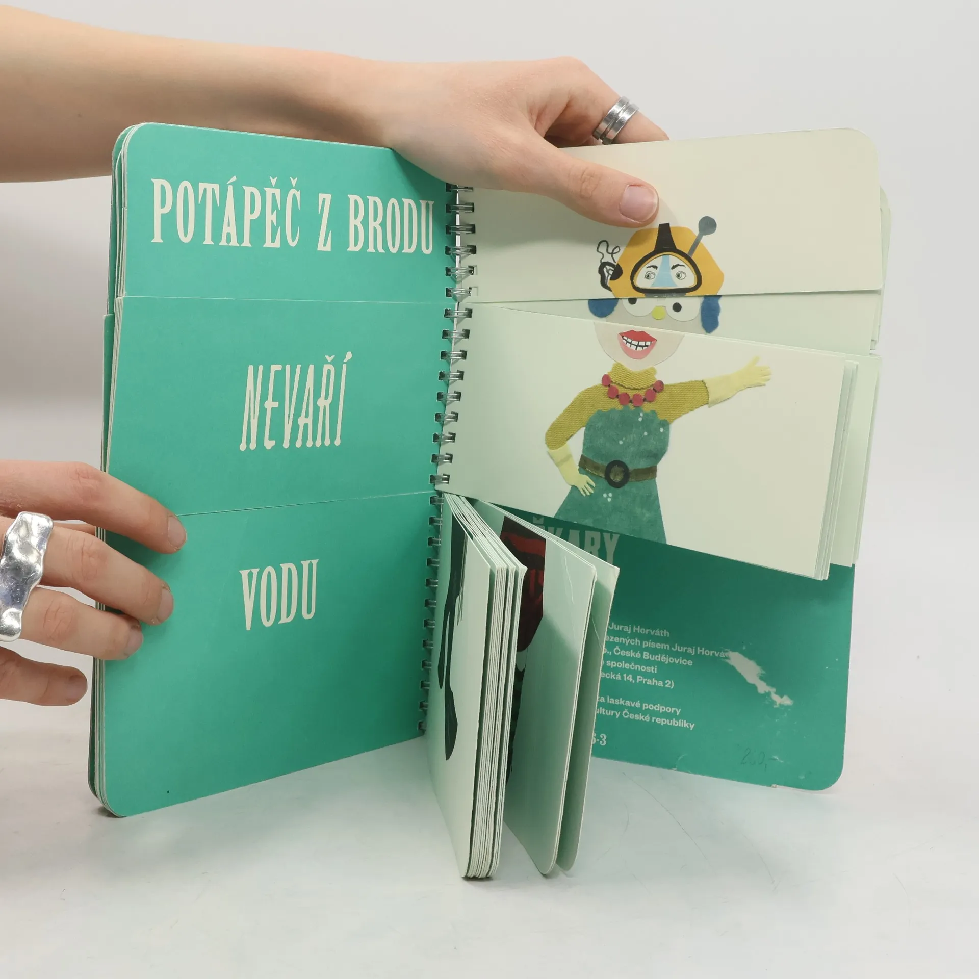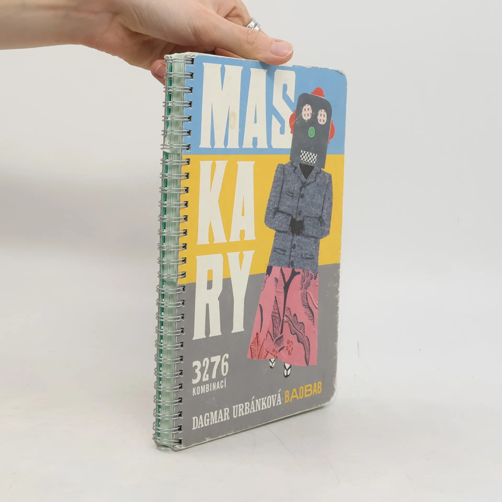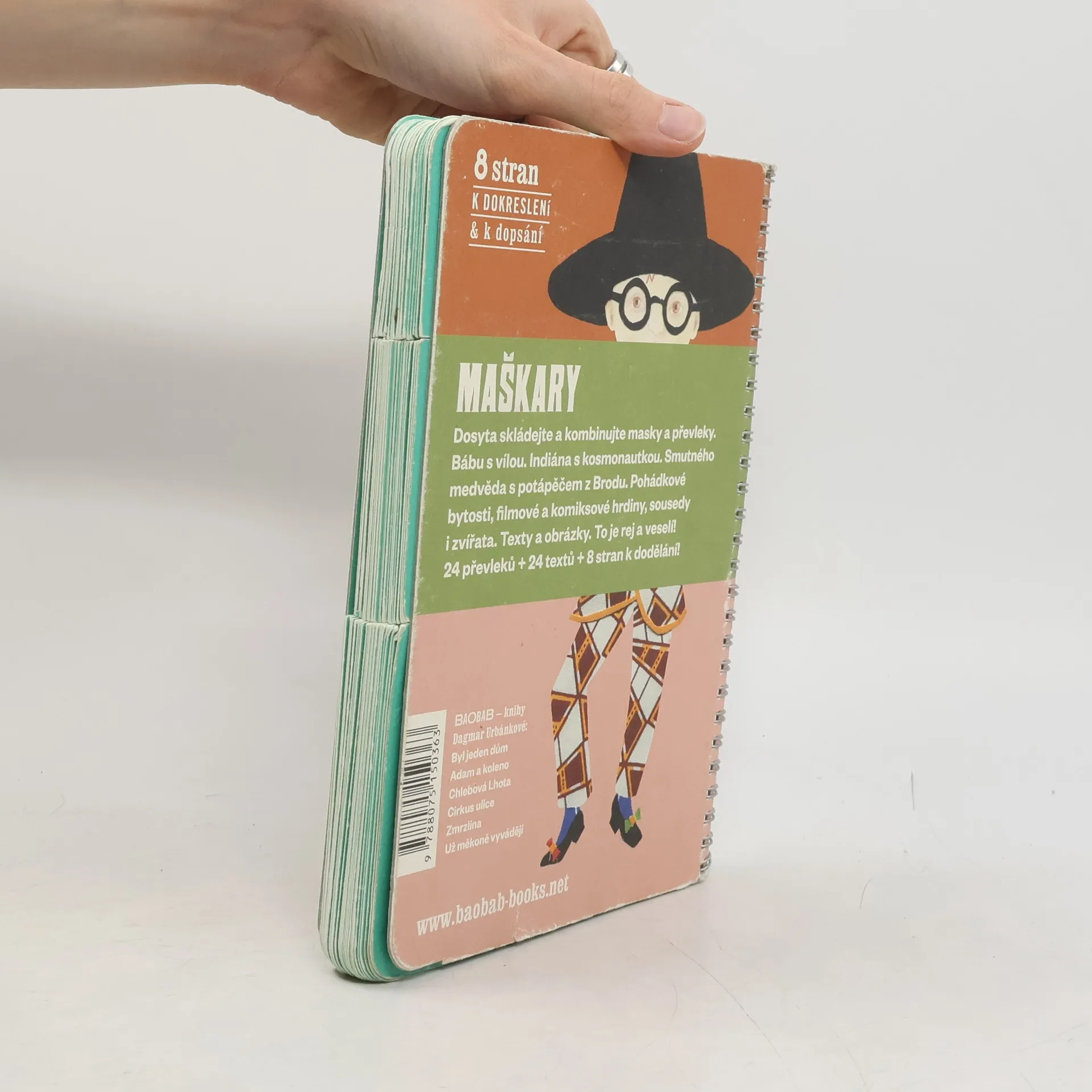 Knížka-hračka ilustrátorky, spisovatelky a scénografky Dagmar Urbánkové je založena na vděčném principu rozřezaných stránek, který umožňuje skládat a kombinovat figury neodmyslitelně patřící k maškarním průvodům a karnevalům. Děti v ní najdou převleky ze starých časů, nedávno minulých i ty ze žhavé současnosti. Kniha je také vzorníkem výtvarných prostředků (kresba, malba, výšivka, koláž), katalogem písmových typů z předpočítačové doby (dřevěné grotesky, zdobné toskánky, těžkopádné egyptienky) i vděčnou slovní hrou. A nakonec — vytvořte si vlastní maškaru i verš!
