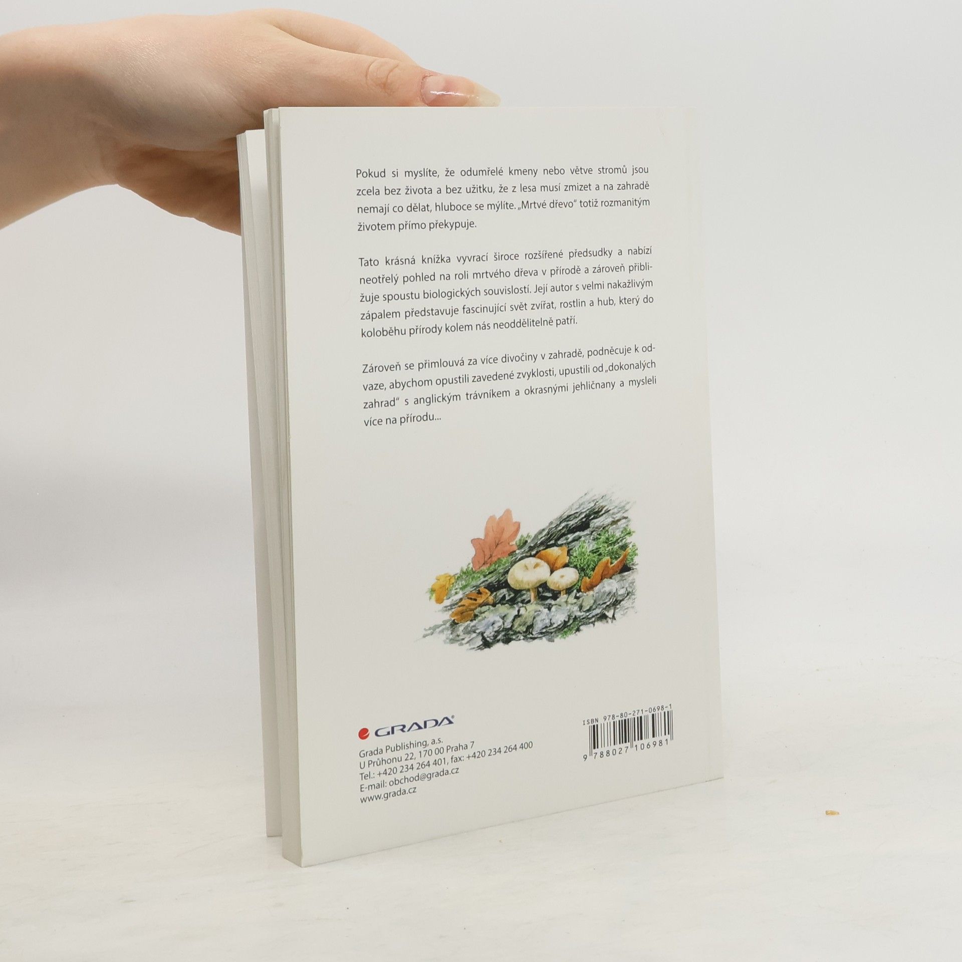 Pokud si myslíte, že odumřelé kmeny nebo větve stromů jsou bez života a užitku, hluboce se mýlíte. „Mrtvé dřevo“ je plné rozmanitého života, což podrobně přibližuje tato knížka. Autor nabízí nový pohled na roli mrtvého dřeva v přírodě a biologické souvislosti, které s ním souvisejí. Kniha je rozdělena do tří částí. První část vysvětluje důležitost odumírajícího dřeva ve volné přírodě a vyvrací škodlivé představy o jeho odstranění. Druhá část se zábavnou formou zaměřuje na živočichy, kteří z mrtvého dřeva profitují. Bez jejich rozkladné činnosti by byla rovnováha v přírodě narušena. Třetí část je praktická a nabízí široké možnosti využití odumřelého dřeva na zahradě. Můžete postavit přírodní plot, hmyzí domeček, mulčovat, nebo ponechat kmeny s dutinami pro hnízdění ptáků. Hromada větví v rohu zahrady poskytne úkryt živočichům, zajímavě tvarované větve ozdobí záhony, a dřevěná palisáda ochrání před zvědavými pohledy. Dřevěné květináče pro sukulenty zaujmou svou estetikou. Kniha je inspirativní pro každého, kdo ekologicky uvažuje, a ukazuje nekonvenční půvab a krásu „mrtvého“ dřeva.