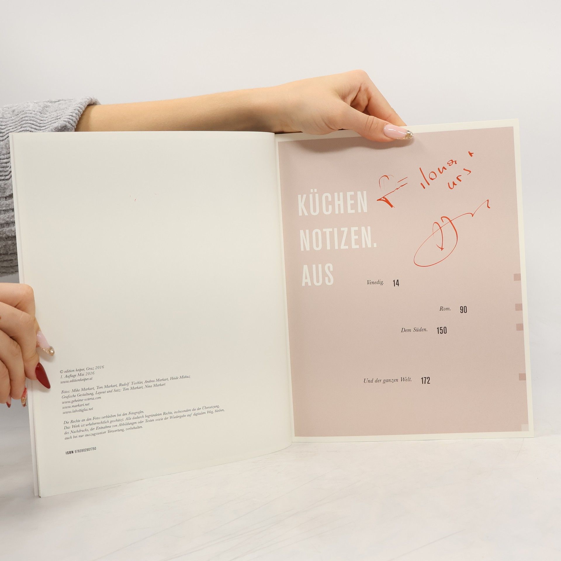 Die Brüder Mike und Tom Markart teilen viele Leidenschaften. Eine davon ist das Kochen. Immer wieder sind die beiden im kulinarischen Bereich aktiv. So waren sie die kulinarischen Erfinder des „capperi!“ in Graz. Nun versammeln sie eine Auswahl ihrer Rezepte in dem Buch mit dem ungewöhnlichen Titel „Die geheime Osteria“. Der im Stil einer einfachen Osteria eingerichtete Gewölberaum in Stainz wurde für drei Monate zum Experimentierfeld. Rezepte wurden ausprobiert, variiert und mit Freunden verkostet. Es wurde fotografiert, diskutiert und nach einem Glas Wein vor allem philosophiert. Nächtelang. Die Autoren haben ein Konzept entworfen, welches tatsächlich nicht alles preisgibt. Die Rezepte animieren, mitunter eigene Wege zu gehen. Das geschriebene Rezept auch einmal neugierig, unfolgsam und eigensinnig zu verlassen. Die Fotografien sind Gemälden nicht unähnlich. Wirken über Farbe, Licht und loten den Grenzbereich zwischen sichtbar und unsichtbar lustvoll aus. Wie lässt das Buch „Die geheime Osteria“ sich also einordnen? Auf welche Küche wird man stoßen, wenn man ins Buch vordringt? Man betritt zuallererst Italien, doch sofort werden alle Türen hinaus in die Welt geöffnet, denn kaum eine Küche ist so sehr dafür geeignet, Zutaten, Ideen und Traditionen anderer Küchen in sich aufzunehmen, wie die Küche Italiens. Daraus ergeben sich ebenso überraschende wie einfache und wohlschmeckende neue Ideen.
