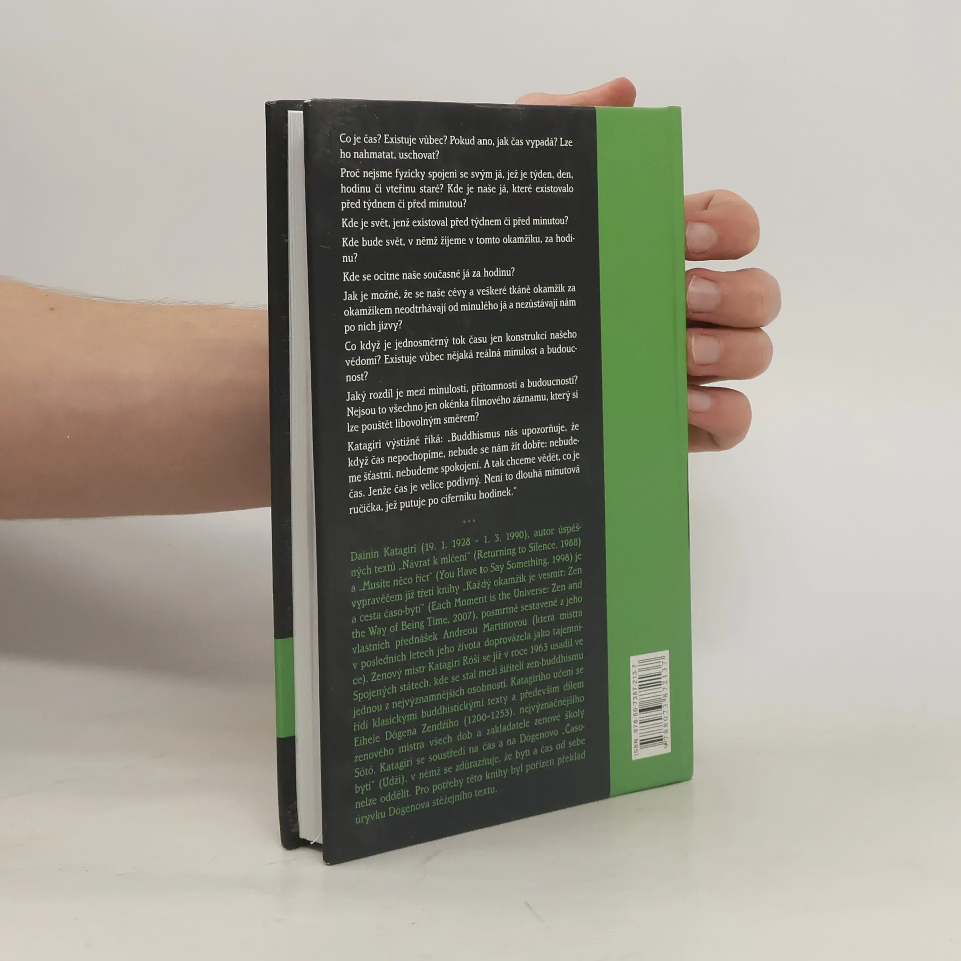 Co je čas? Existuje vůbec? Pokud ano, jak čas vypadá? Lze ho nahmatat, uschovat? Proč nejsme fyzicky spojeni se svým já, jež je týden, den, hodinu či vteřinu staré? Kde je naše já, které existovalo před týdnem či před minutou? Kde je svět, jenž existoval před týdnem či před minutou? Kde bude svět, v němž žijeme v tomto okamžiku, za hodinu? Kde se ocitne naše současné já za hodinu? Jak je možné, že se naše cévy a veškeré tkáně okamžik za okamžikem neodtrhávají od minulého já a nezůstávají nám po nich jizvy? Co když je jednosměrný tok času jen konstrukcí našeho vědomí? Existuje vůbec nějaká reálná minulost a budoucnost? Jaký rozdíl je mezi minulostí, přítomností a budoucností? Nejsou to všechno jen okénka filmového záznamu, který si lze pouštět libovolným směrem? Katagiri výstižně říká: "Buddhismus nás upozorňuje, že když čas nepochopíme, nebude se nám žít dobře: nebudeme šťastní, nebudeme spokojení. A tak chceme vědět, co je čas. Jenže čas je velice podivný. Není to dlouhá minutová ručička, jež putuje po ciferníku hodinek."