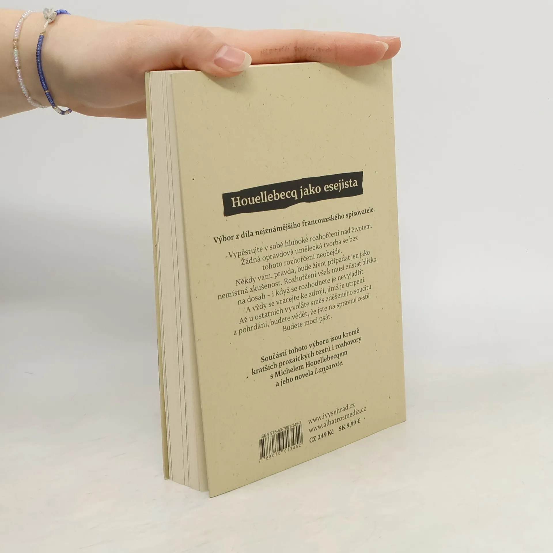 Houellebecq jako esejista. Výbor z textů nejznámějšího francouzského spisovatele. „Vypěstujte v sobě hluboké rozhořčení ze života,“ vyzývá Michel Houellebecq v eseji připomínajícím gnostickou parodii příruček osobního rozvoje. Ve výboru kratších prozaických útvarů potvrzuje pověst jednoho z nejoriginálnějších hlasů dneška, když nás zavádí na plátna němého filmu či před průčelí současné architektury. Prorok žlutých vest zde nahlíží i na průběh globalizace či liberalismus, a hlavně osvětluje, proč vždy mířit k pravdě.