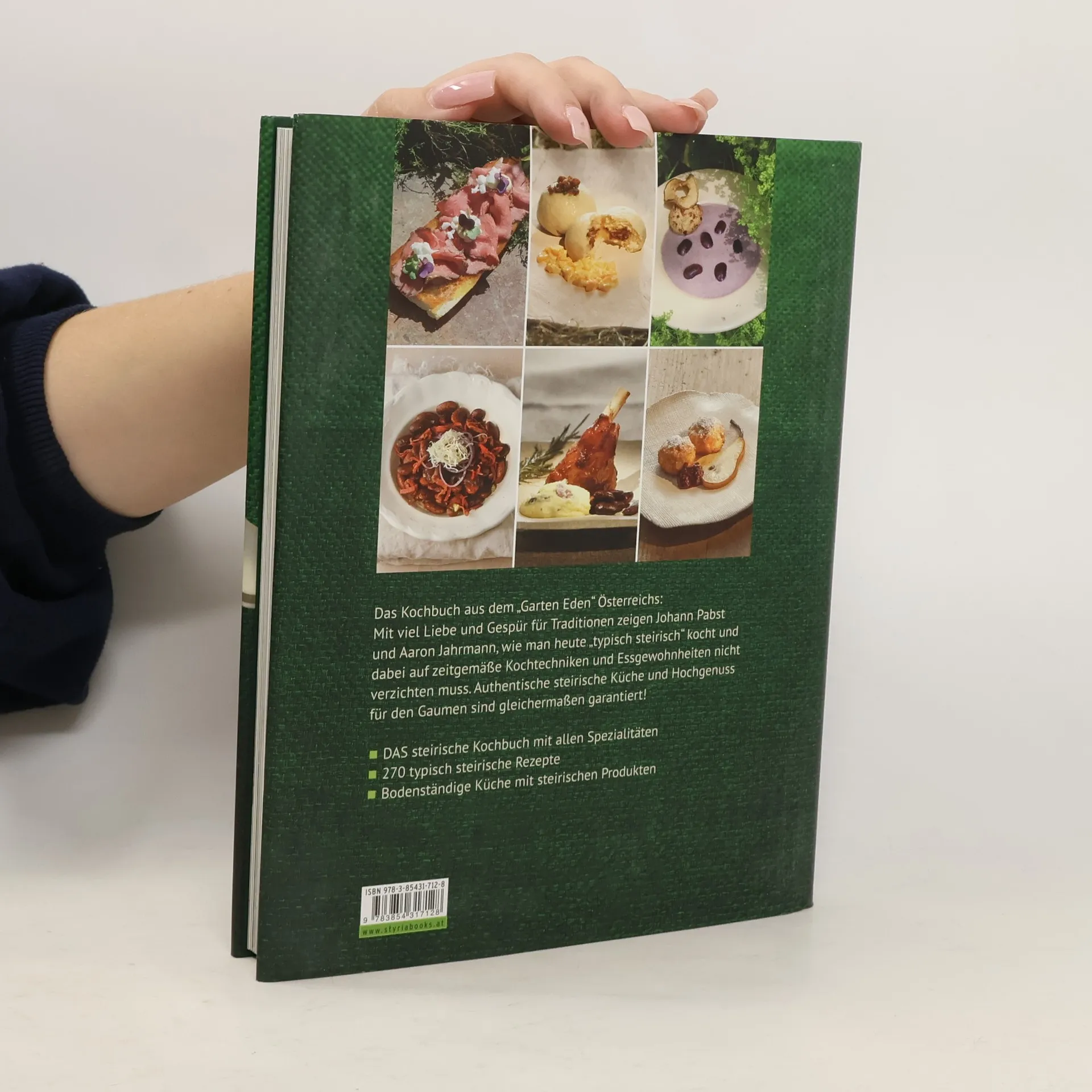 Vom Hoadnsterz bis zu Grammelkraut und Klachelsupp’n, vom Verhackerten bis zu Kürbisgröstl und Wurzelfleisch: Die ehemals schlichte Bauernkost der Steiermark hat sich längst zu einer hervorragenden Küche gewandelt. Ihre Spezialitäten sind jedem Feinschmecker ein Begriff. Feinste Edel- und Leitprodukte wie Kürbiskernöl, Käferbohnen, Steirerkas, Steirerkren, Sulmtaler Lämmer, Vulcanoschinken oder Styria-Beef sind zu Fixpunkten der kulinarischen Landkarte Österreichs geworden. Die Steiermark präsentiert sich als großartiger Feinkostladen und wahres Schlaraffenland für Genießer. Mit viel Liebe und Gespür für Traditionen zeigen Johann Pabst und Aaron Jahrmann, wie man heute „typisch steirisch“ kocht und dabei auf zeitgemäße Kochtechniken und Essgewohnheiten nicht verzichten muss. Hochgenuss für den Gaumen ist garantiert!