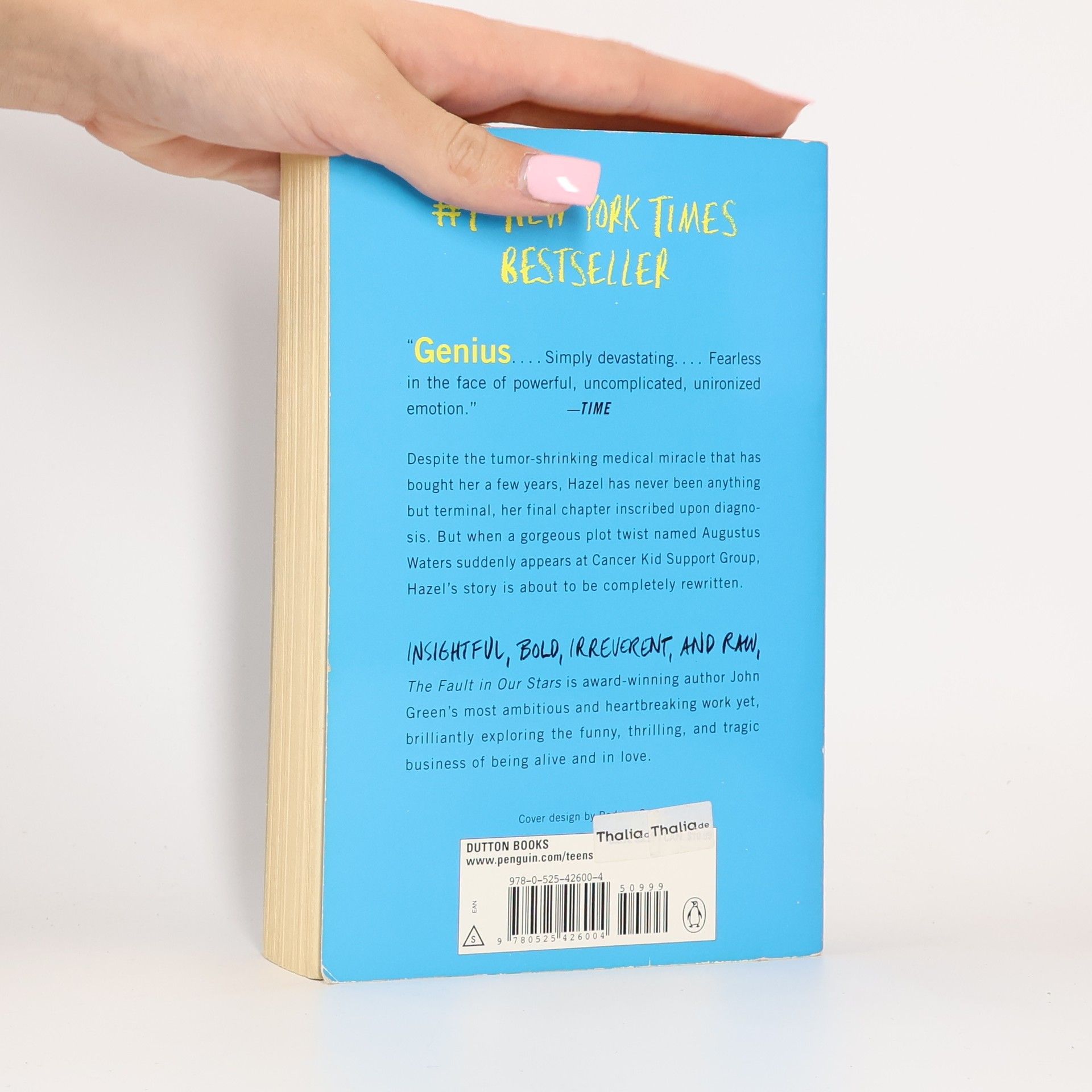 Despite the tumor-shrinking medical miracle that has bought her a few years, Hazel has never been anything but terminal, her final chapter inscribed upon diagnosis. But when a gorgeous plot twist named Augustus Waters suddenly appears at Cancer Kid Support Group, Hazel's story is about to be completely rewritten. INSIGHTFUL, BOLD, IRREVERENT, AND RAW, The Fault in Our Stars is an award-winning author John Green's most ambitious and heartbreaking work yet, brilliantly exploring the funny, thrilling, and tragic business of being alive and in love.