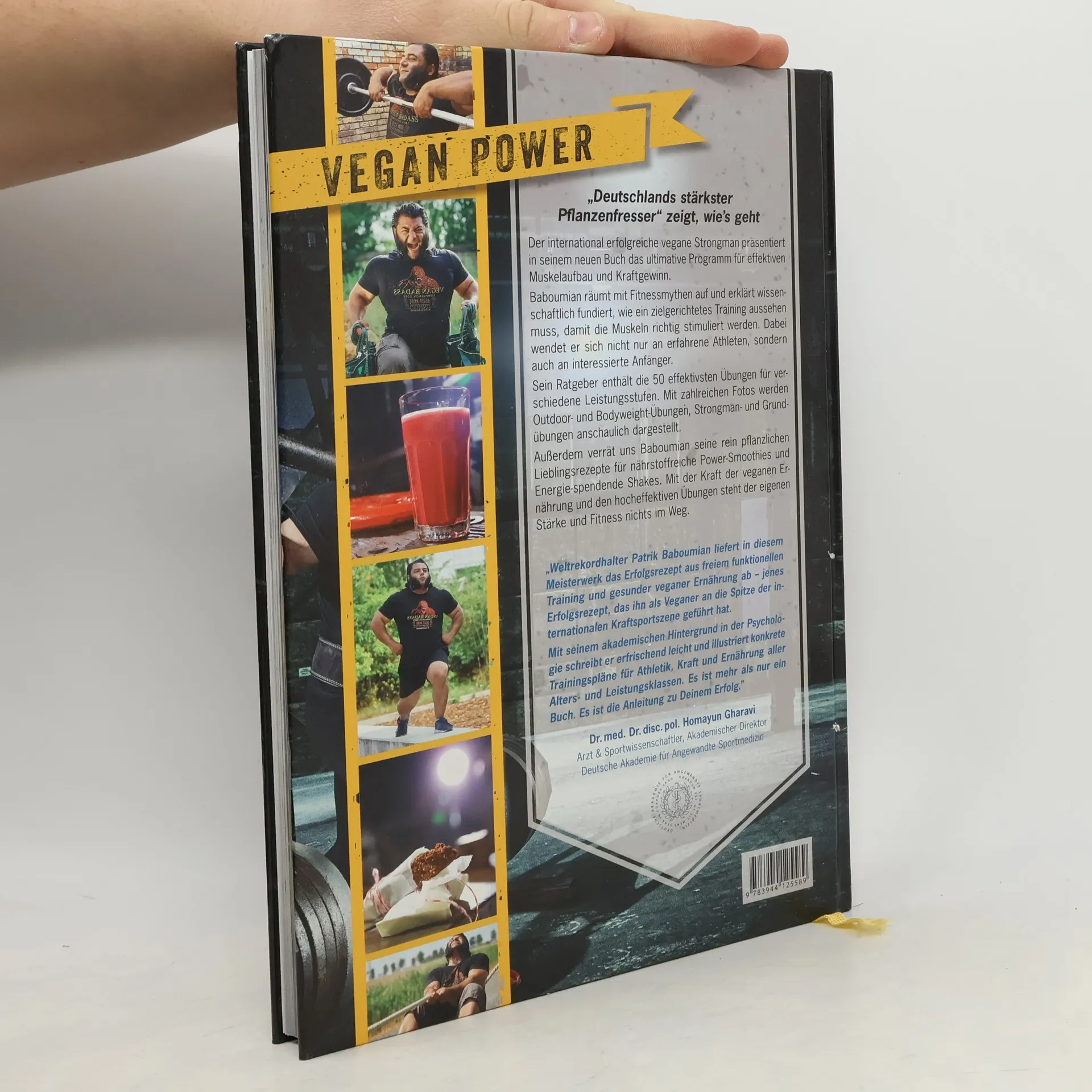 „Deutschlands stärkster Pflanzenfresser“ zeigt, wie’s geht Der international erfolgreiche vegane Strongman präsentiert in seinem neuen Buch das ultimative Programm für effektiven Muskelaufbau und Kraftgewinn. Baboumian räumt mit Fitnessmythen auf und erklärt wissenschaftlich fundiert, wie ein zielgerichtetes Training aussehen muss, damit die Muskeln richtig stimuliert werden. Dabei wendet er sich nicht nur an erfahrene Athleten, sondern auch an interessierte Anfänger. Sein Ratgeber enthält die 50 effektivsten Übungen für verschiedene Leistungsstufen. Mit zahlreichen Fotos werden Outdoor- und Bodyweight-Übungen, Strongman- und Grundübungen anschaulich dargestellt. Außerdem verrät uns Baboumian seine rein pflanzlichen Lieblingsrezepte für nährstoffreiche Power-Smoothies und Energie-spendende Shakes. Mit der Kraft der veganen Ernährung und den hocheffektiven Übungen steht der eigenen Stärke und Fitness nichts im Weg.