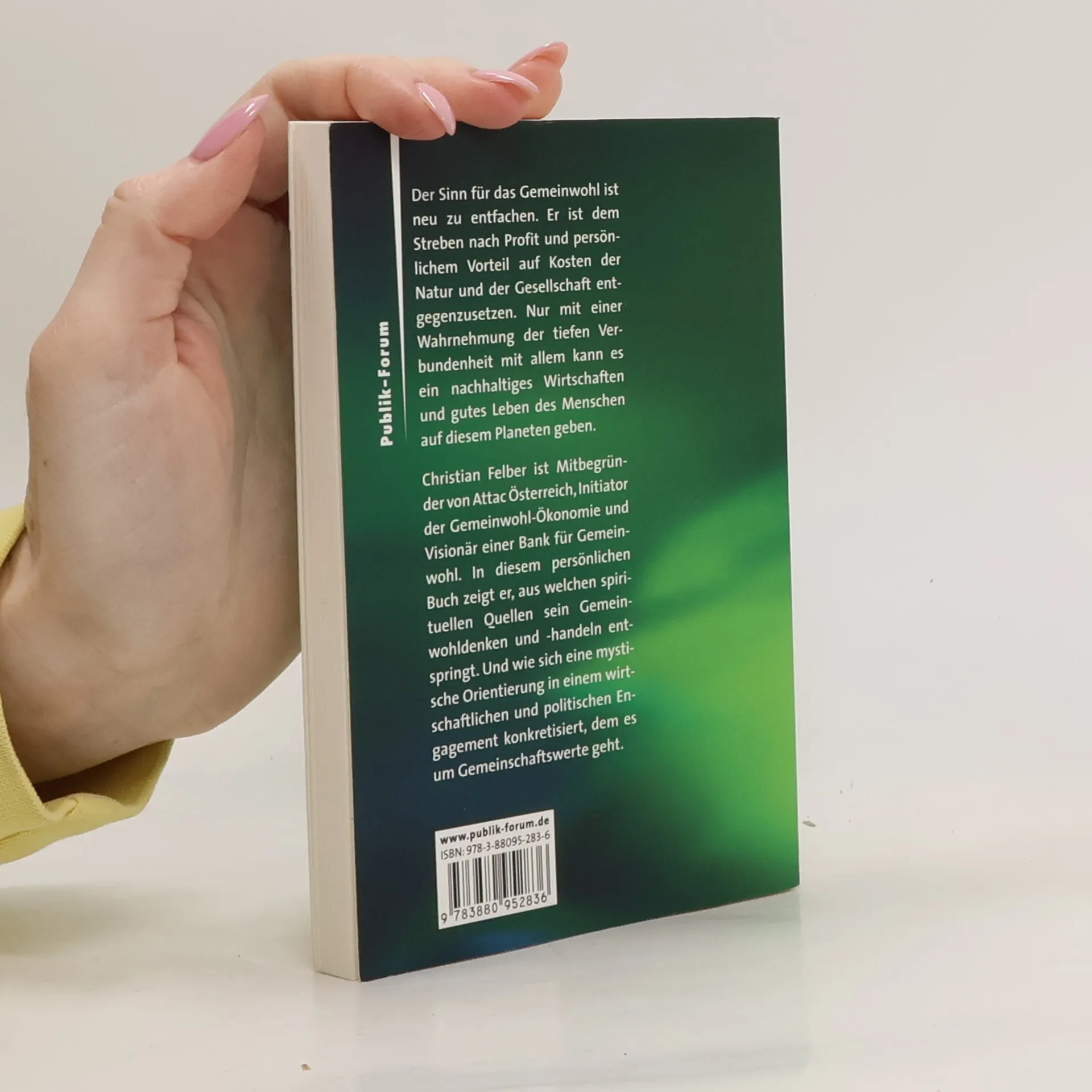 Der Sinn für das Gemeinwohl ist neu zu entfachen. Er ist der Jagd nach Profit und persönlichem Vorteil auf Kosten der Natur und der Gesellschaft entgegenzusetzen. Nur mit einem Sinn für die Vorfahrt von Ökologie, Sozialität und Solidarität gibt es ein wirkliches Überleben des Lebens. Christian Felber ist einer der führenden Köpfe der Gemeinwohl-Ökonomie, Mitbegründer von Attac Österreich und der Bank für Gemeinwohl. In diesem persönlichen Buch zeigt er, aus welchen spirituellen Wurzeln sein Gemeinwohldenken und -handeln entspringt. Und wie sich eine spirituelle Orientierung in einem wirtschaftlichen Denken und Handeln konkretisiert, dem es um Gemeinschaftswerte geht.