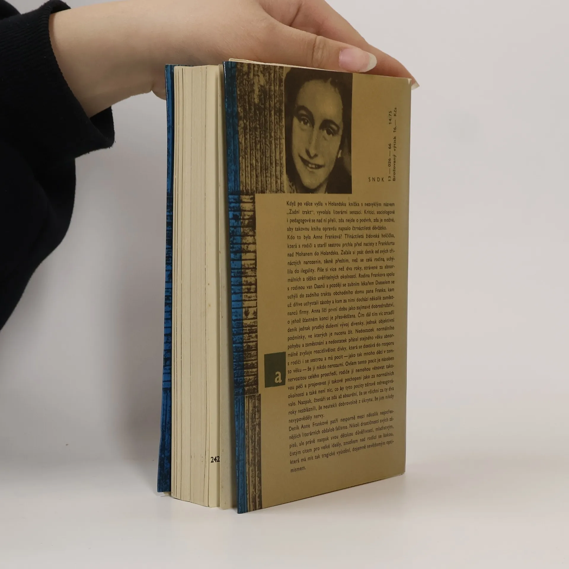 Zajímavý kulturně historický dokument, který je závažnou ilustrací nacistického pronásledování Židů za druhé světové války očima čtrnáctileté dívky. 3. vydání, v SNDK první 13-026-66