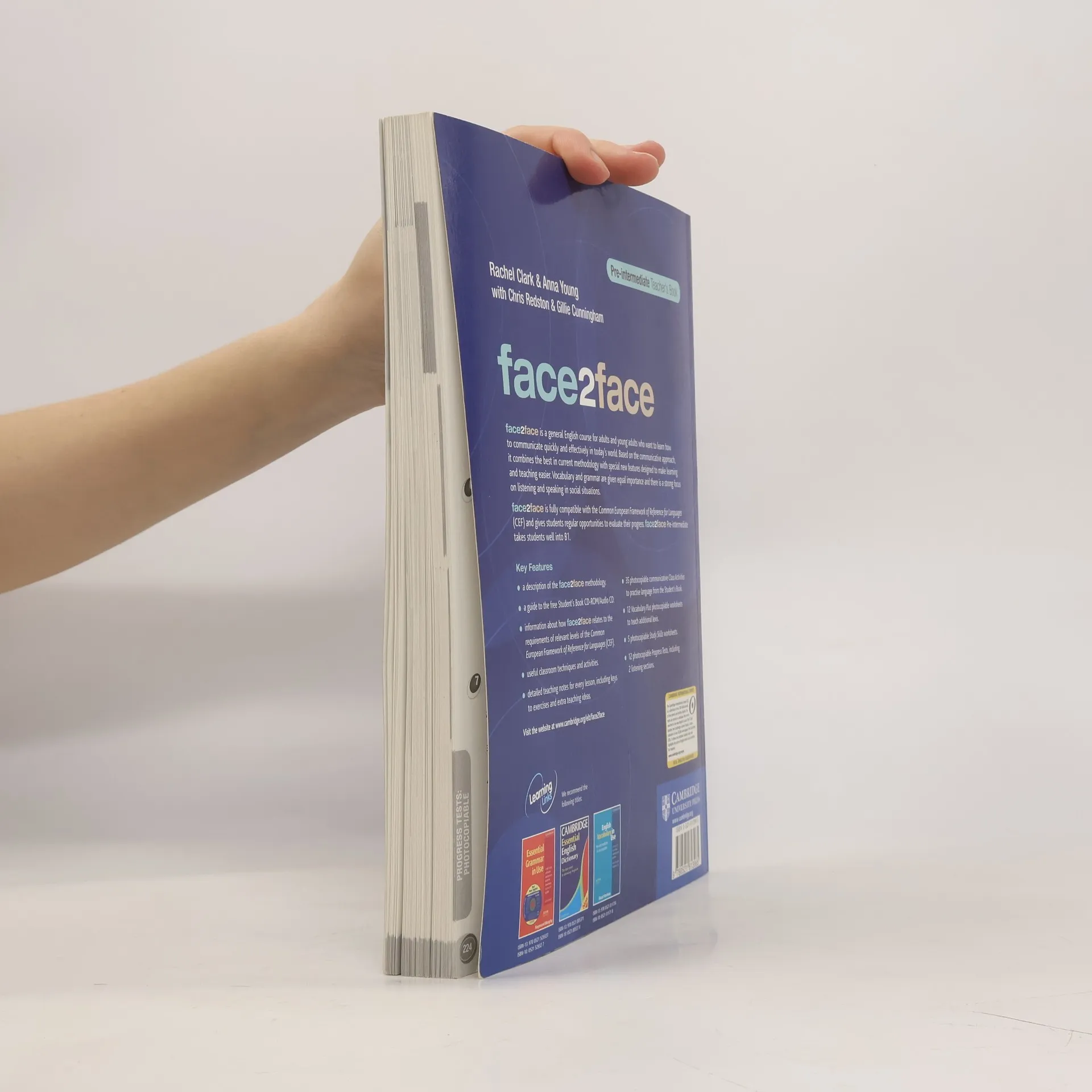 The face2face Teacher's Book provides valuable and comprehensive support, from teaching notes for each lesson and useful classroom techniques to over 100 pages of extra teacher's resources (including 35 Class Activities, Photocopiables, 12 Vocabulary Plus Worksheets and 5 Study Skills worksheets). In addition, the Teacher's Book explains the face2face approach and provides information on how face2face relates to the Common European Framework of Reference for Languages. The Teacher's Book also includes a guide to the Student's Book CD-Rom/Audio CD.